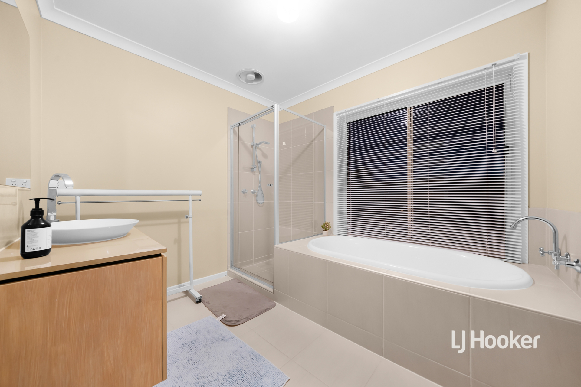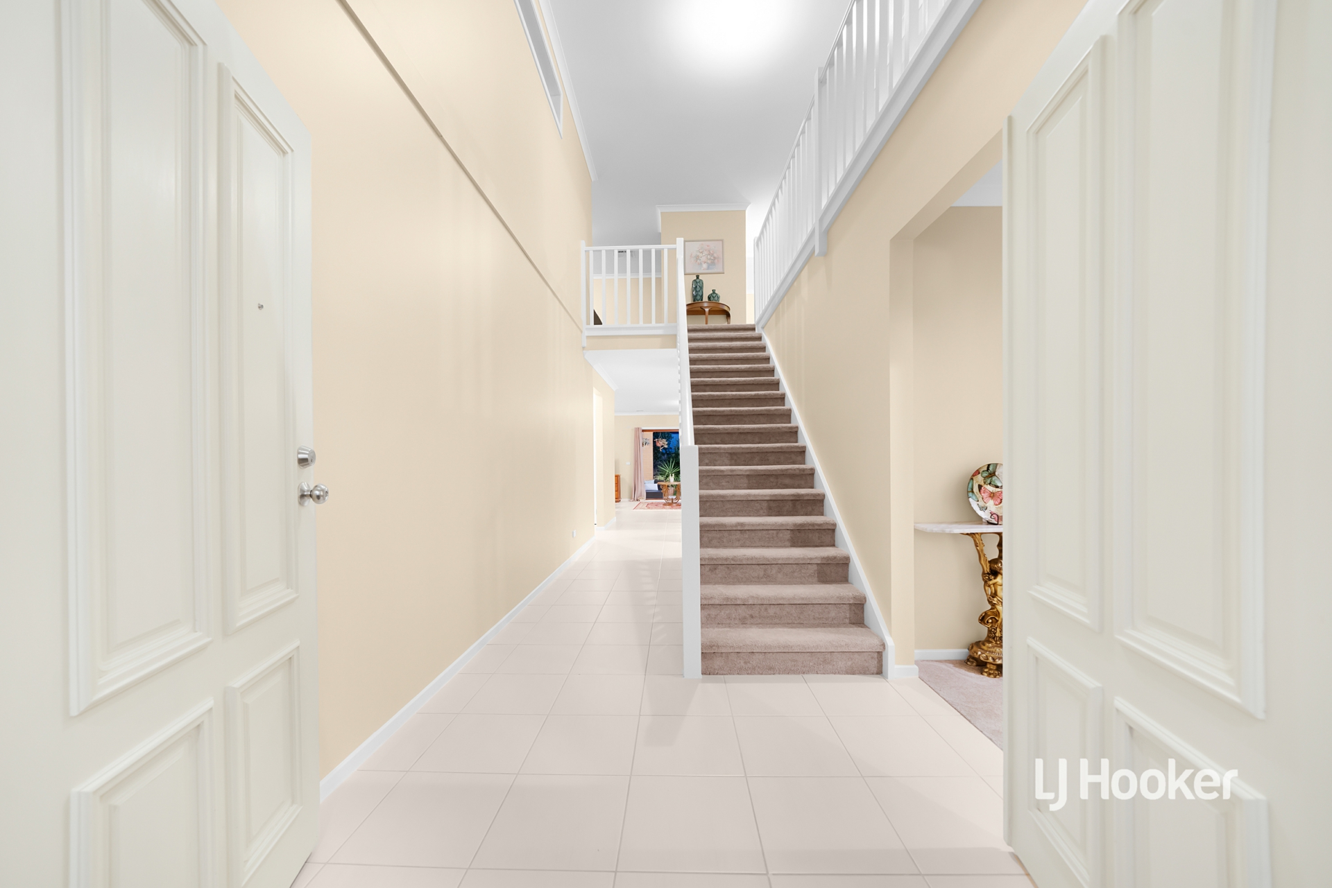 - Boasting five serene, carpeted bedrooms, the main located on the ground floor is fitted with double walk-in robes and modern ensuite with double vanity, while three of the remaining upstairs bedrooms are equipped with walk-in robes and one with a built-in robe, serviced by the central main bathroom featuring a relaxing bathtub and a downstairs powder room offers additional convenience.