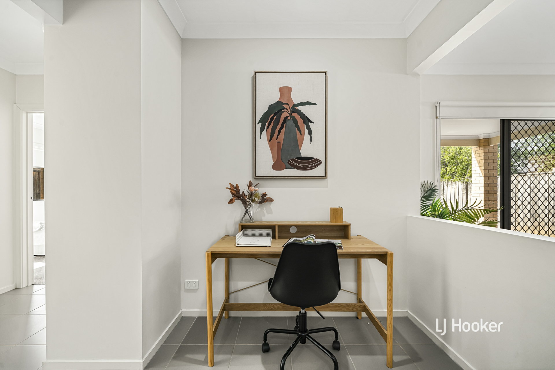 - The open-plan living and dining area is bathed in natural sunlight, enhanced by tiled flooring and abundant windows, while a dedicated study nook adds functionality to this versatile space.