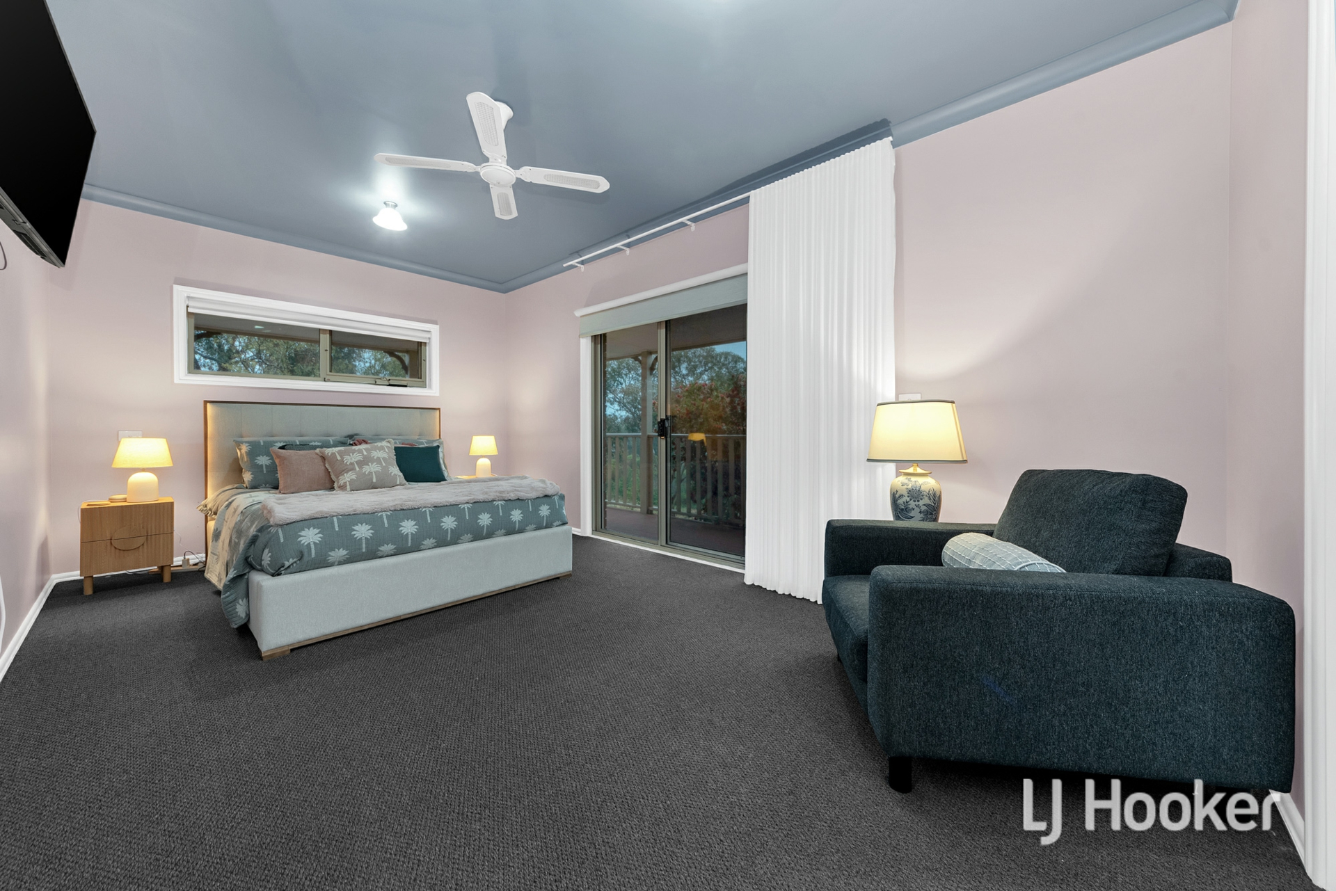 • The Upstairs Retreat: All three upstairs bedrooms open through sliding doors onto the wrap-around balcony, capturing natural light and elevated views. Bedrooms two and three include built-in robes and share a central bathroom, while the spacious main bedroom offers a walk-in robe, en suite and private balcony access.