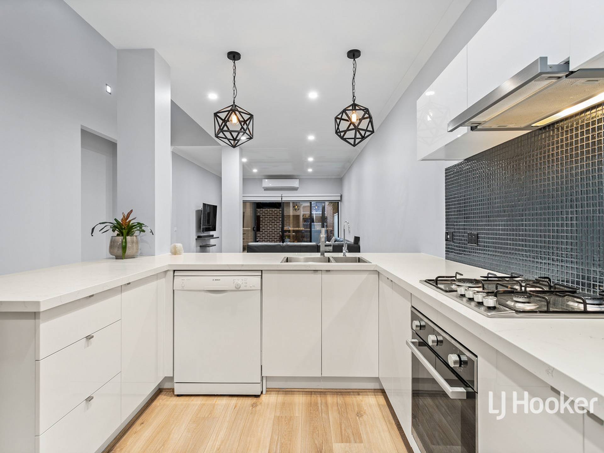 -A well-equipped, modern kitchen suited to home cooks and pro chefs alike offers spacious benchtops with stone overlay, tiled splash back, stainless steel appliances including oven and gas cooktop, as well a gleaming, white dishwasher and plenty of storage space including a walk-in pantry.