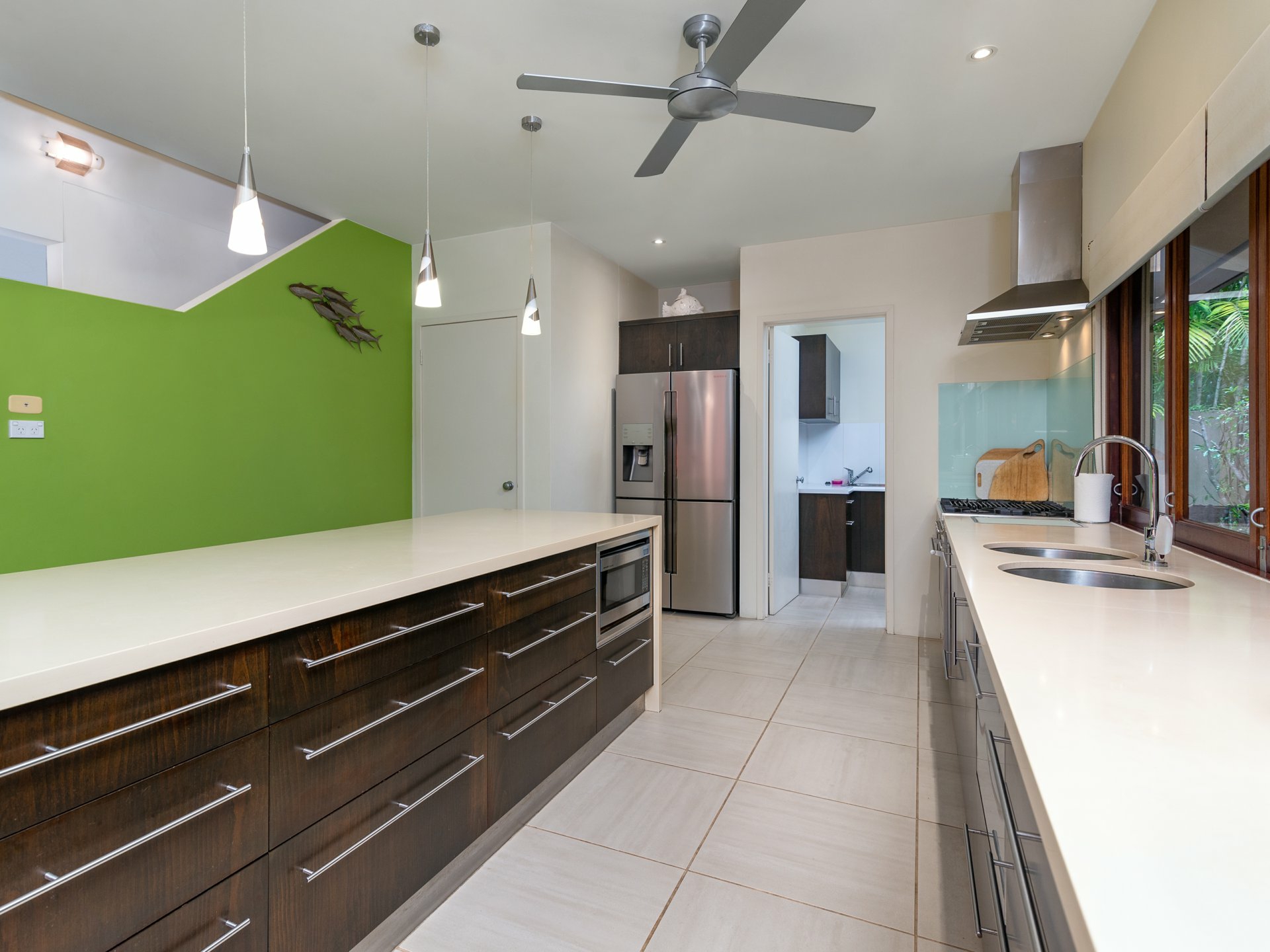 The gourmet kitchen is crafted for both everyday living and entertaining, complete with premium appliances, double drawer dishwashers, quality gas cooktop, expansive waterfall island bench and walk-in pantry. Flowing seamlessly from kitchen to dining and living spaces, banks of timber-framed bi-fold doors dissolve the boundary between indoors and out - perfectly embracing the tropical climate. Solar panels have also been installed.