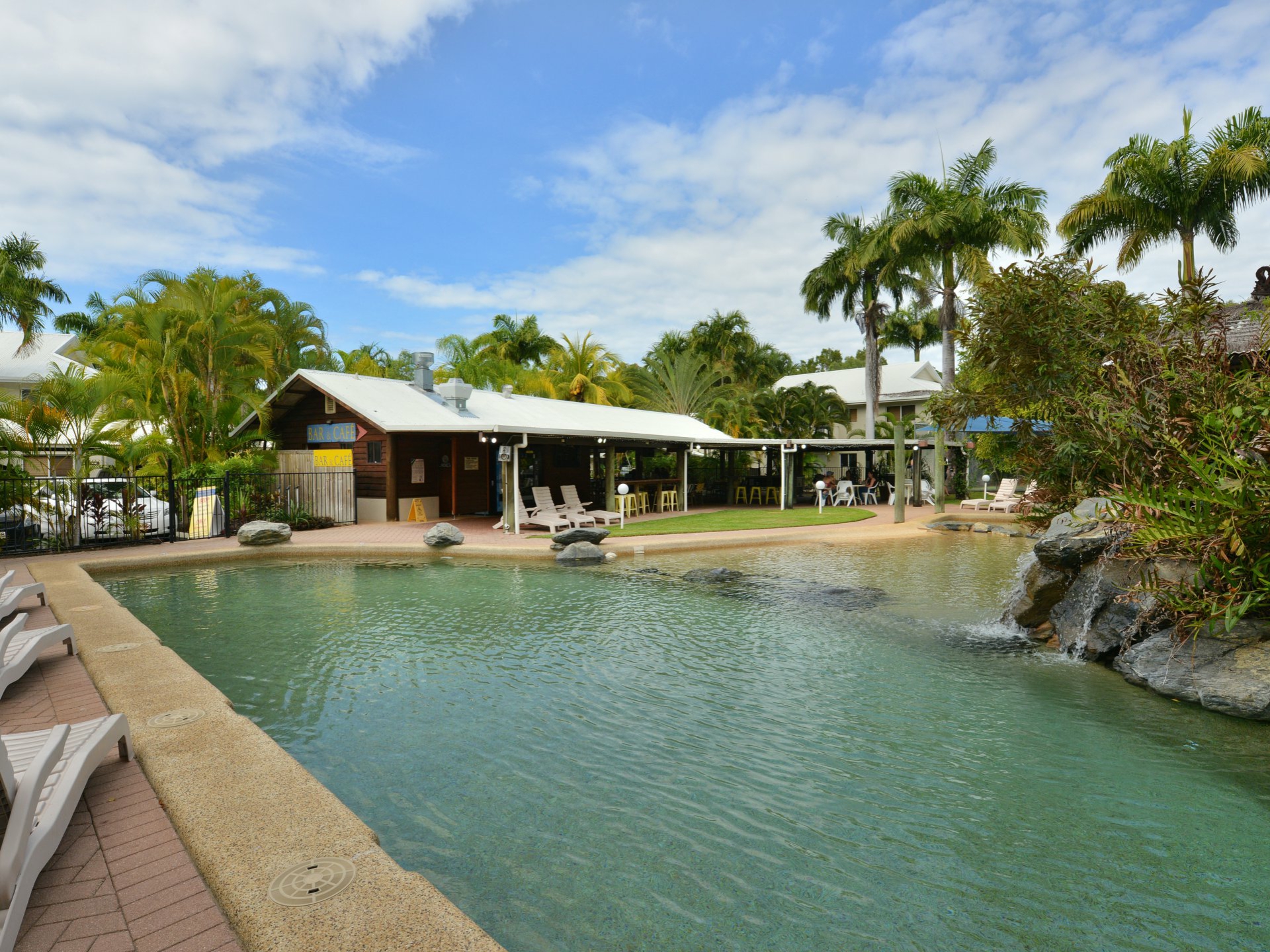 Facilities include carport on title, excellent lagoon pool with straight edge for swimming laps, spa, cafe restaurant/bar and tennis courts, and frequent shuttle bus to town centre or anywhere else in Port Douglas.