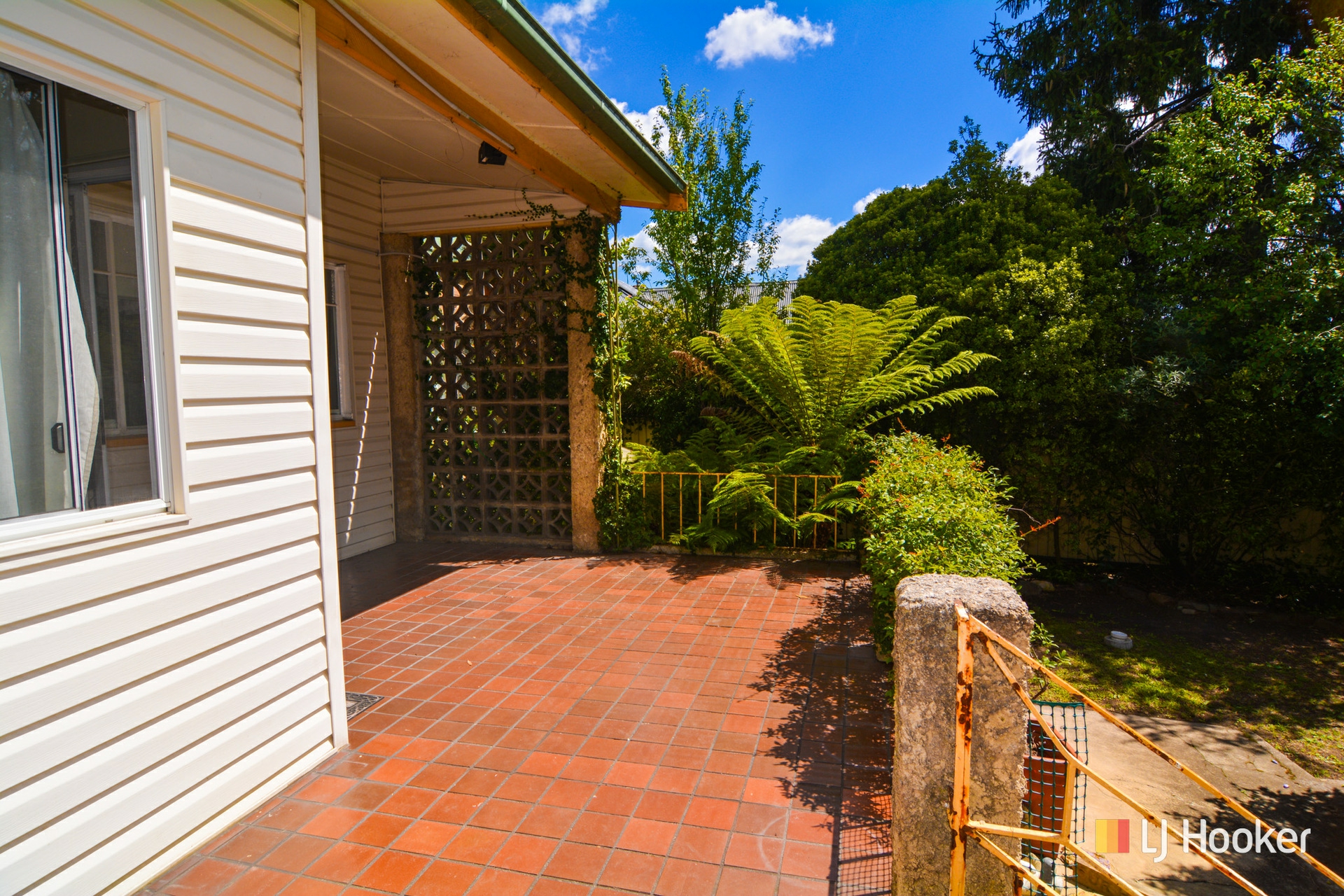 There is a long covered front verandah, tiled rear verandah and open patio and a paved courtyard/ outdoor seating area.