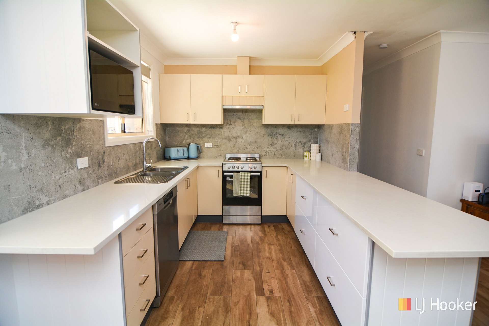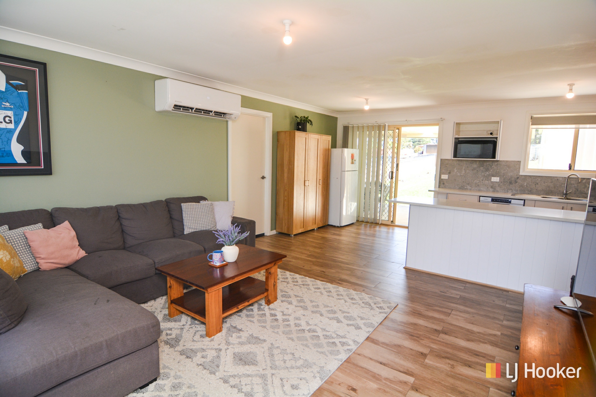 The conventional floorplan offers 3 bedrooms with built-in robes, a new kitchen with stone benchtops, dishwasher, and breakfast bar, an open plan living room with ceramic tiled flooring and split system A/C and there is a fresh modern bathroom.