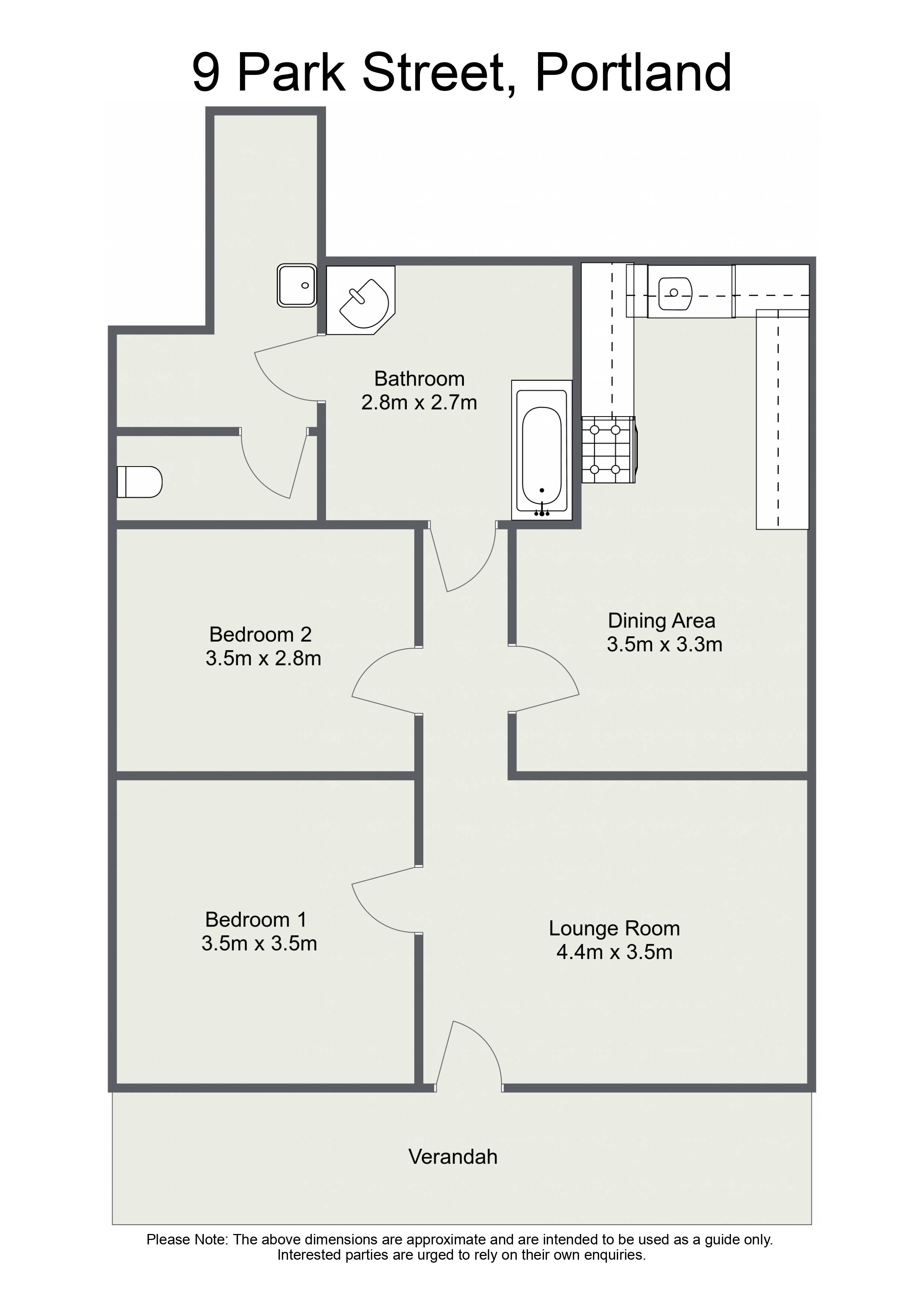 The floorplan consists of 2 bedrooms, eat-in kitchen, seperate living area, basic bathroom and laundry.