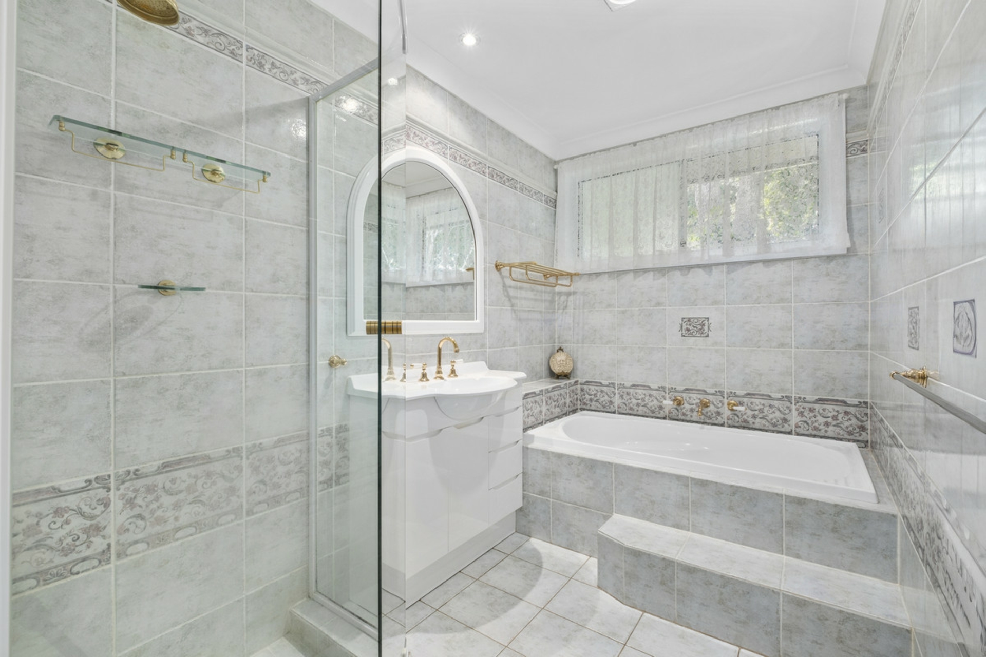 -Immaculate bathroom with quality fixtures and fittings and floor to ceiling tiles