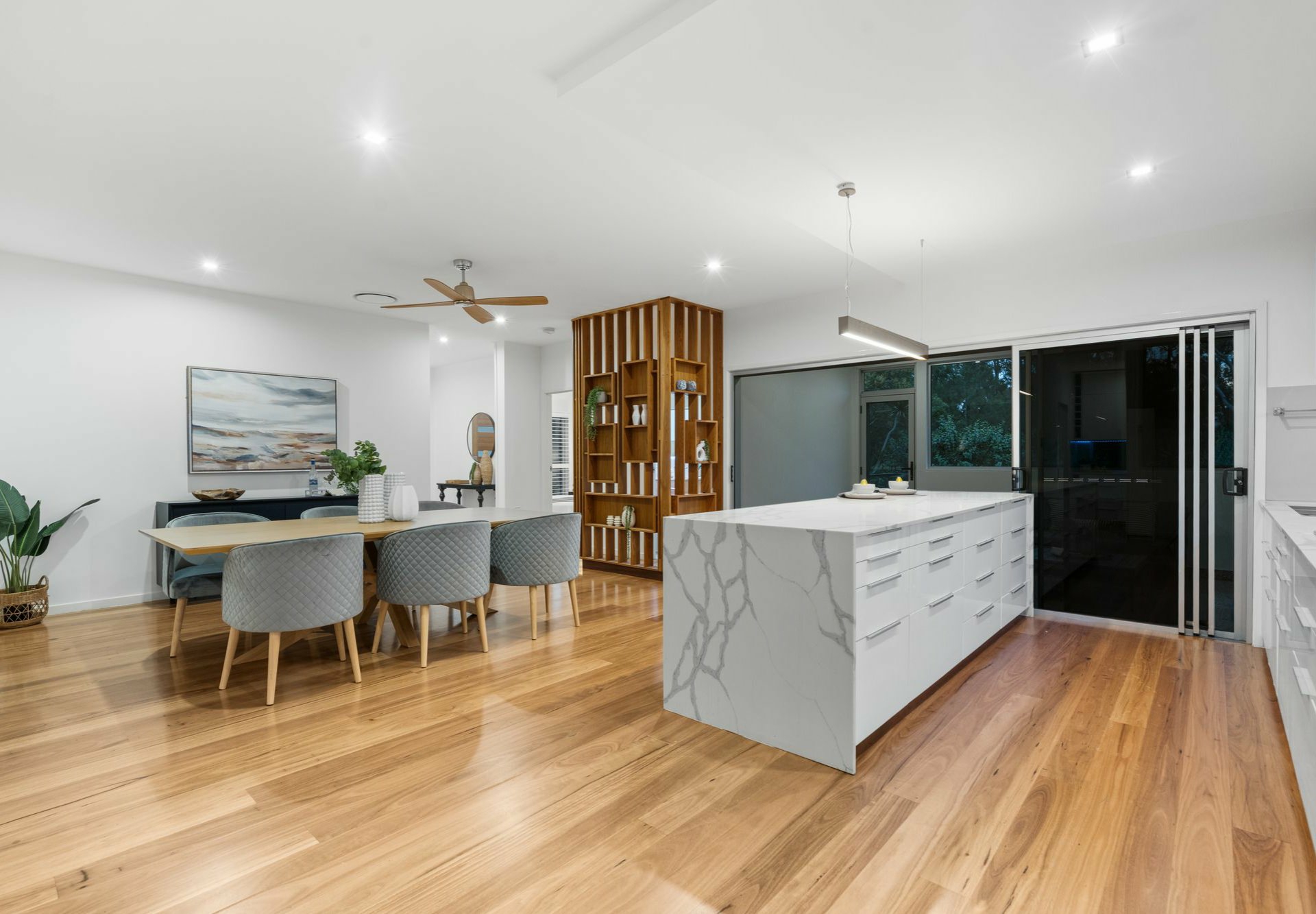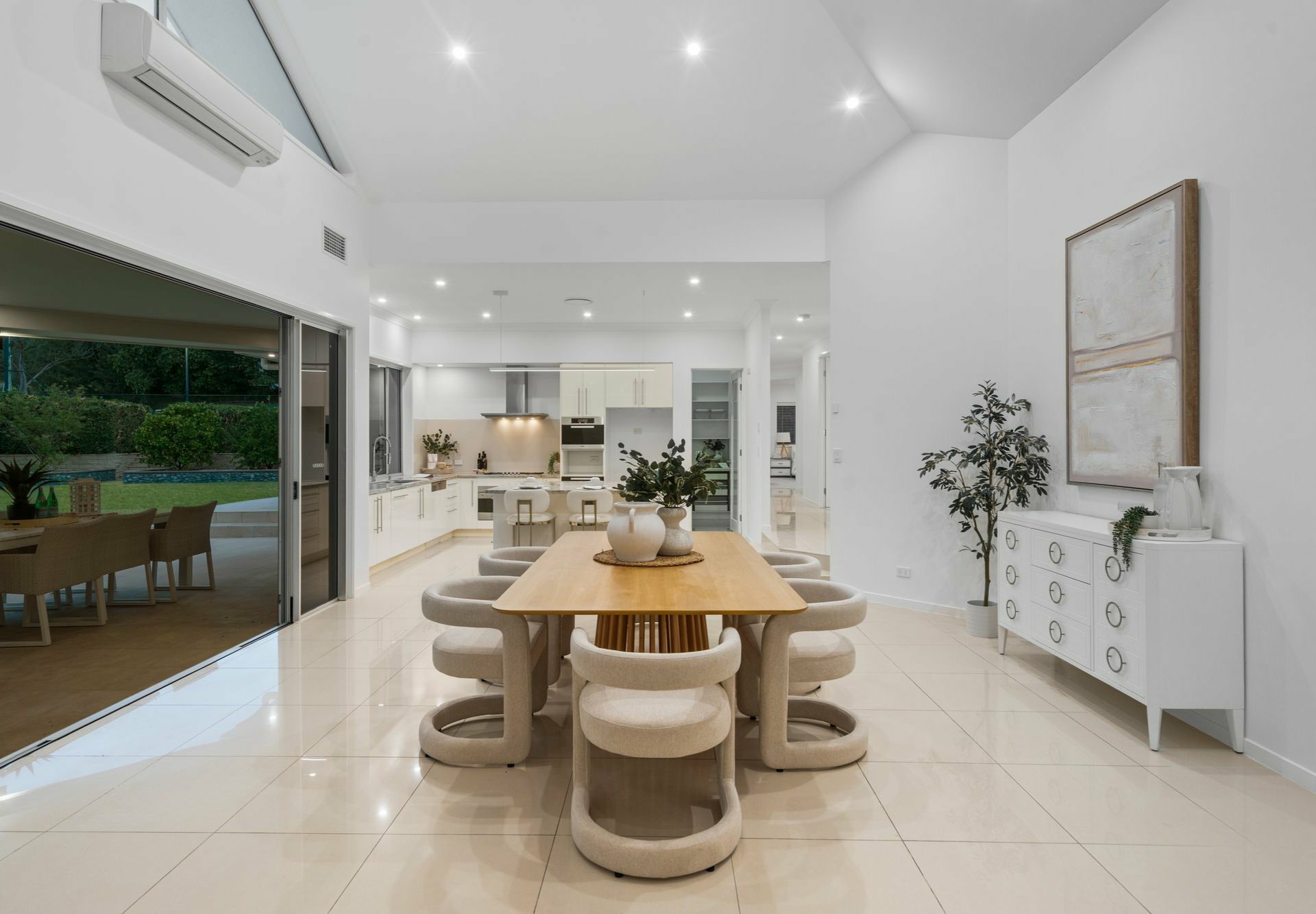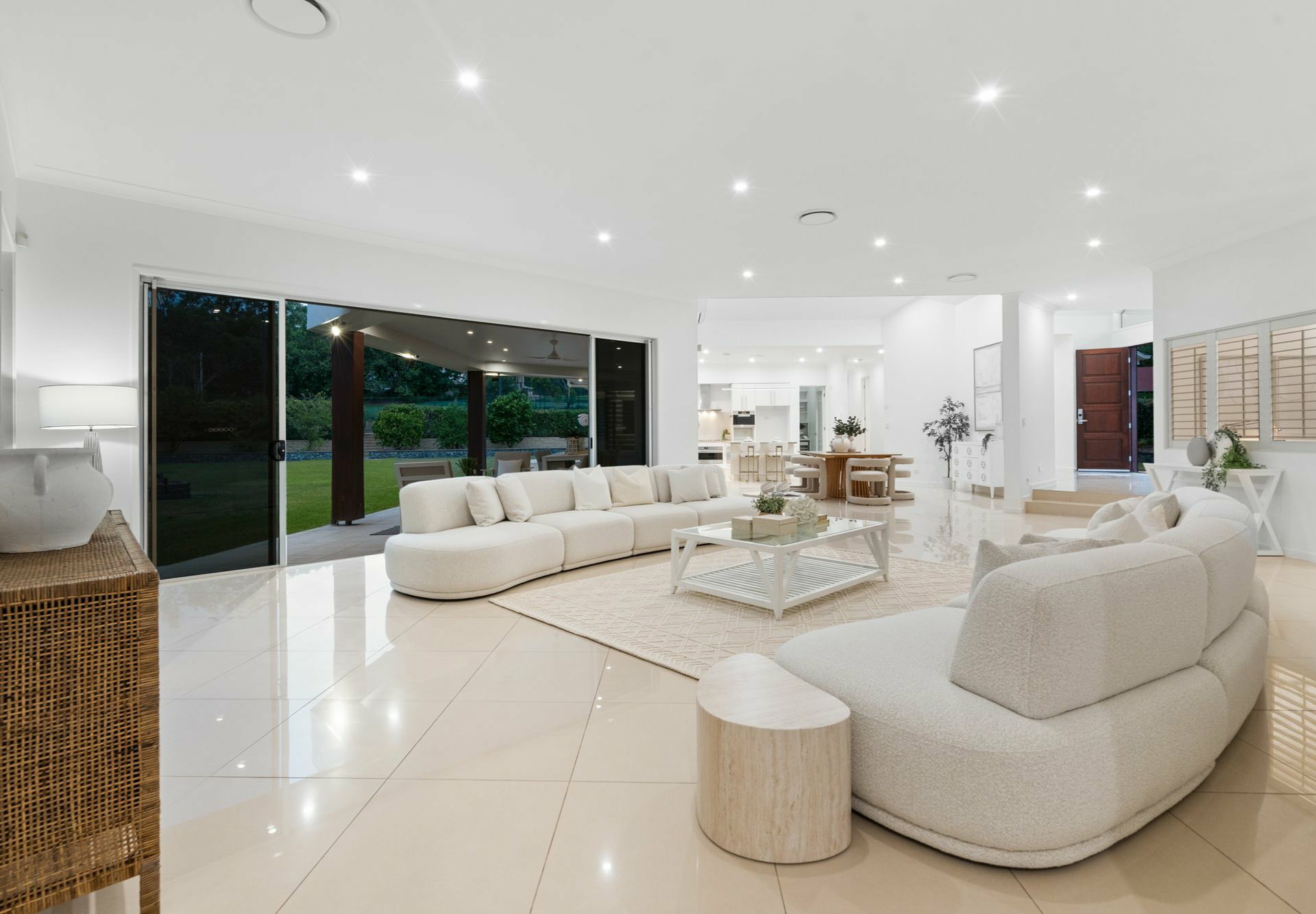 The gourmet kitchen is a showstopper. With thick stone benchtops, premium Miele appliances, gas cooking, a large central island and massive walk-in pantry, it's as practical as it is stylish. Adjoining the kitchen, the open plan dining and living zones are framed by architectural lines and open straight out through huge sliding doors to the covered alfresco - perfect for summer soirees.