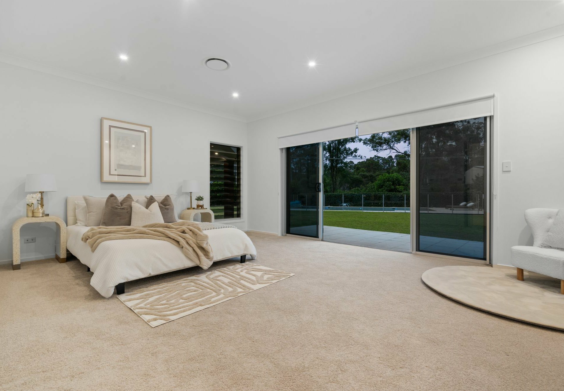 There's also a separate rumpus room with a wet bar and private patio, a dedicated study, and five plush bedrooms including a decadent master retreat with private pool views, a walk-in robe, and oversized ensuite with double vanity and soaking tub.