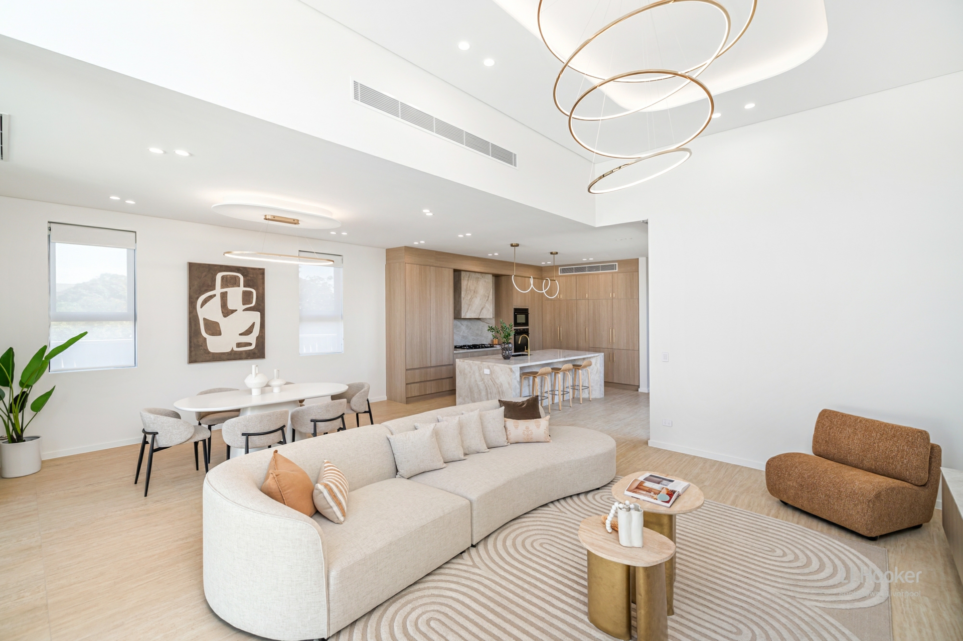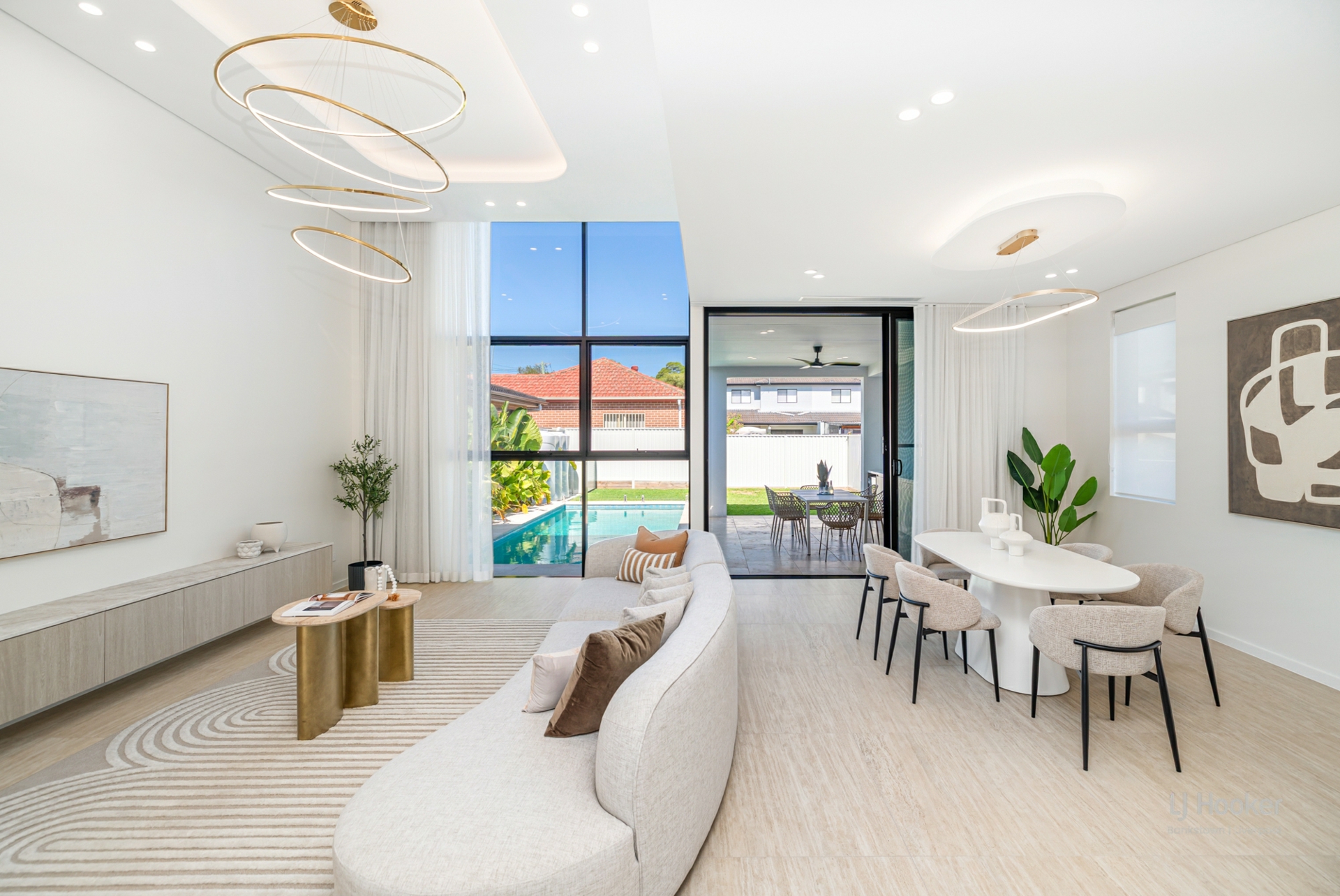 From the moment you arrive, the striking contemporary faCade and bold modern lines set an impressive tone. Step inside to a grand hallway complemented by soaring 4.3-metre-high ceilings, creating an immediate sense of space and elegance. Sun-filled interiors, feature lighting and expansive glazing enhance the open-plan design, while two large living zones provide flexibility for both relaxed family living and sophisticated entertaining.