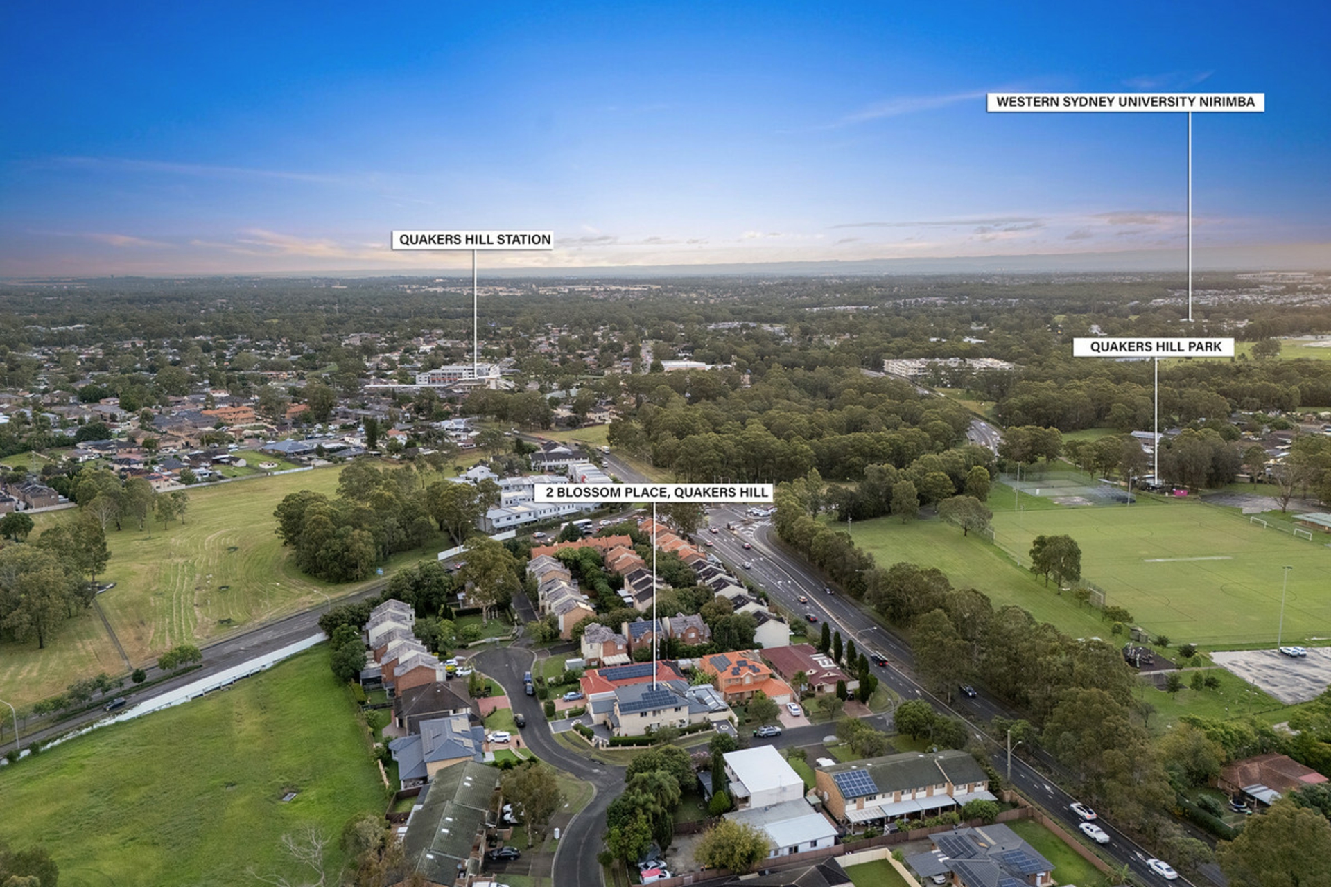 - 3 min Approx. drive to Quakers Hill Train Station