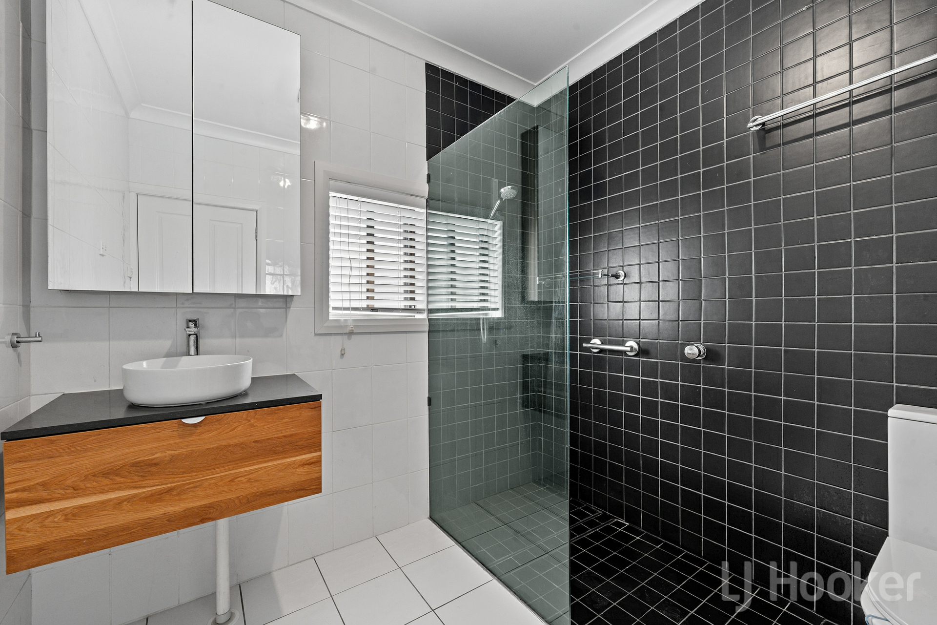 The well-appointed kitchen features a natural gas cooktop, under-bench oven, and ample cupboard and bench space, making it ideal for the home chef. The recently renovated bathroom is a standout, showcasing a modern design with shower, vanity, and full floor-to-ceiling tiling.