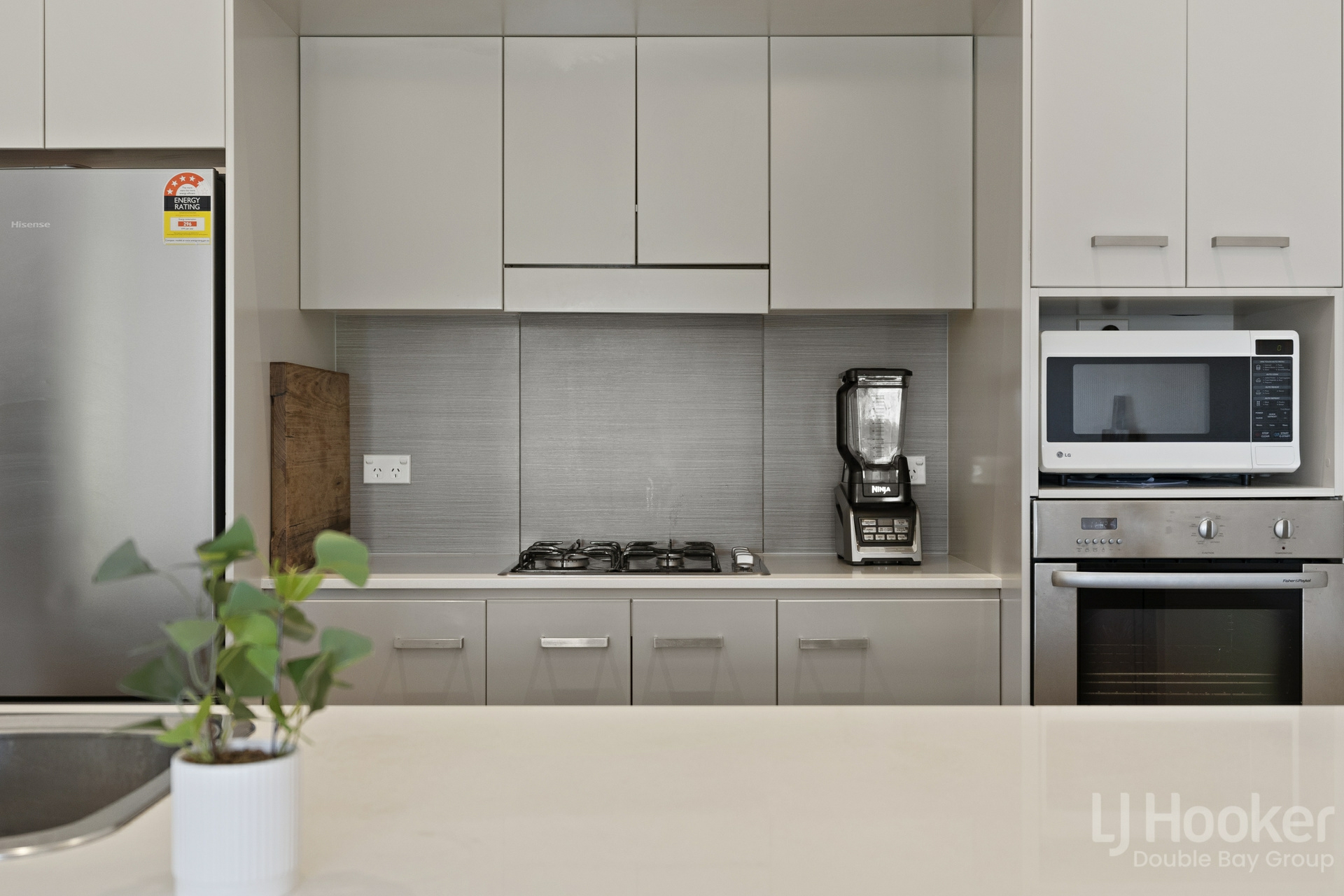 - Gas kitchen has CaesarStone benches and stainless appliances