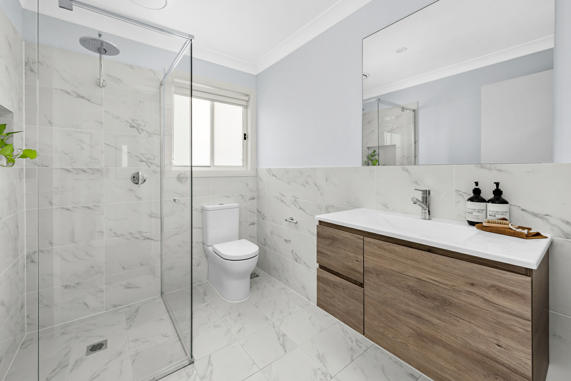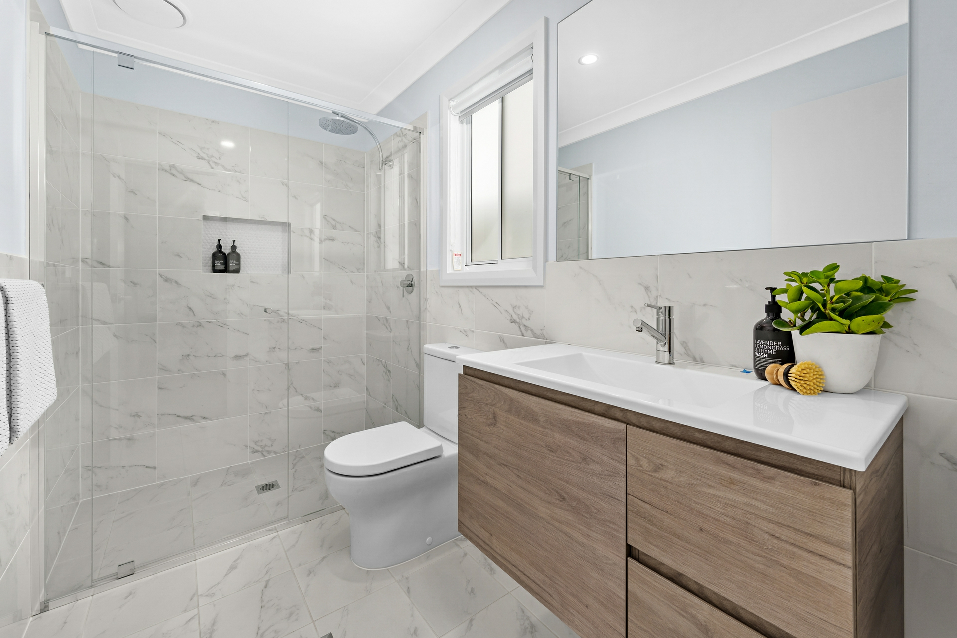 Master bedroom with walk-through robe with beautiful ensuite and excellent natural light, large shower recess & wall-hung vanity.