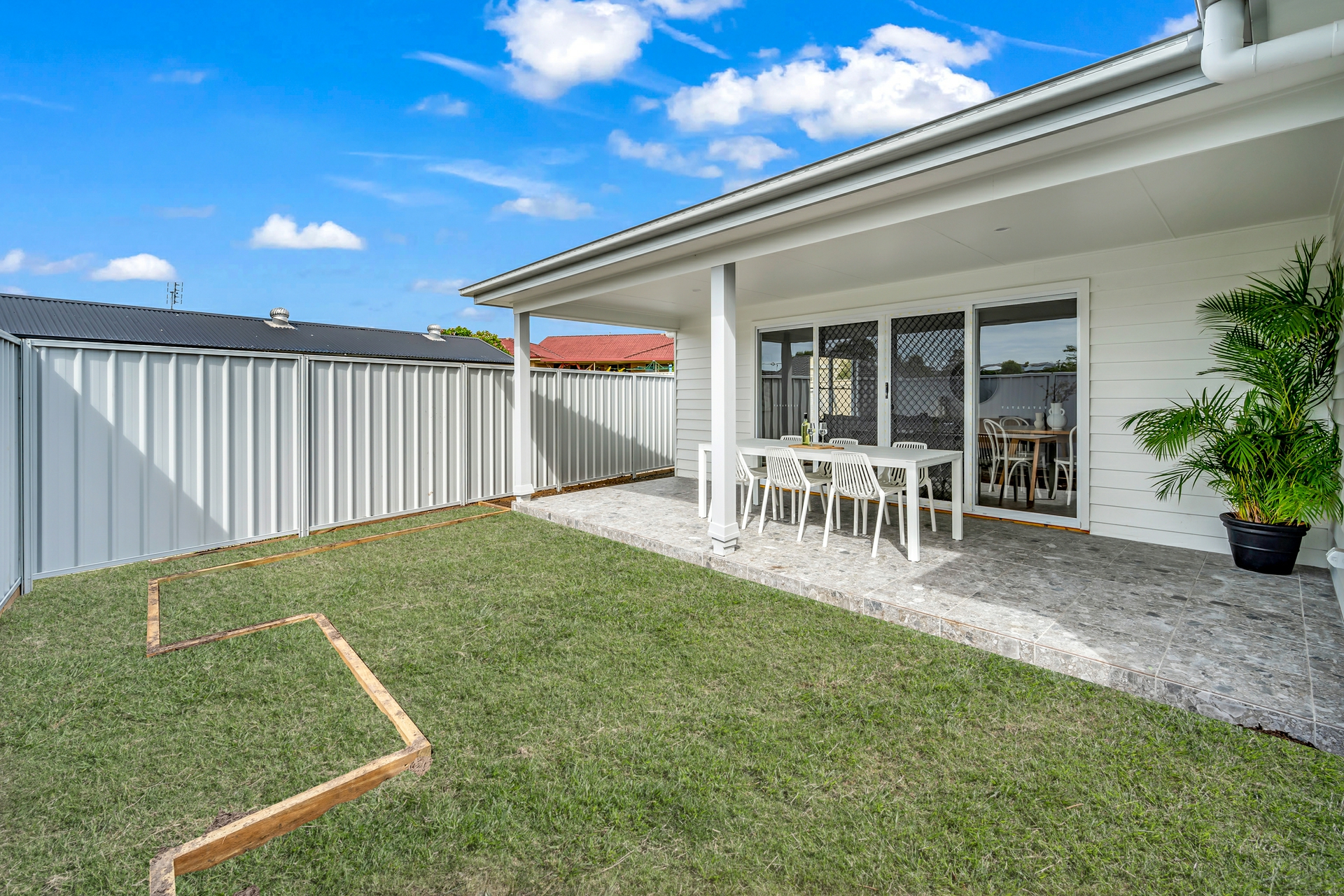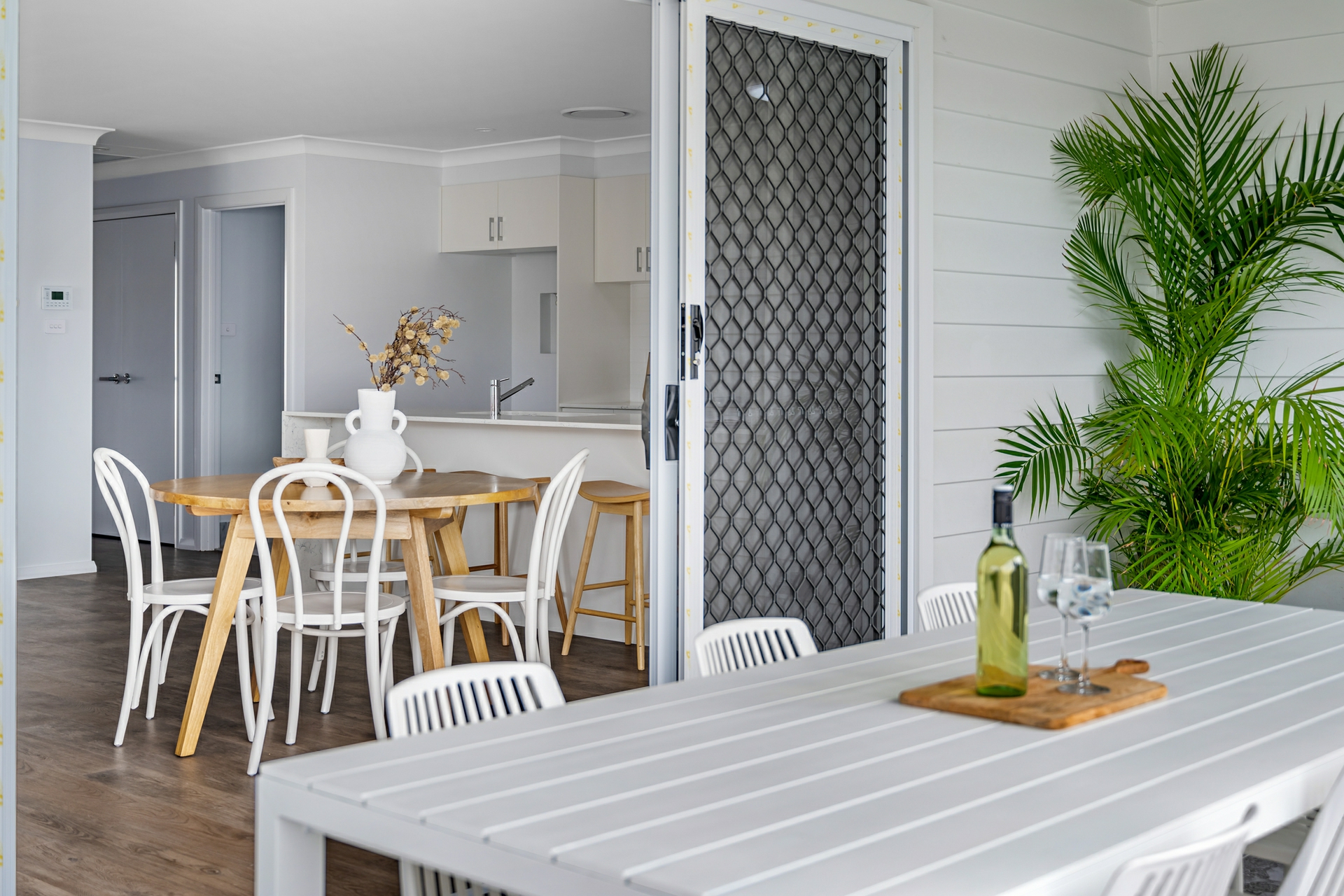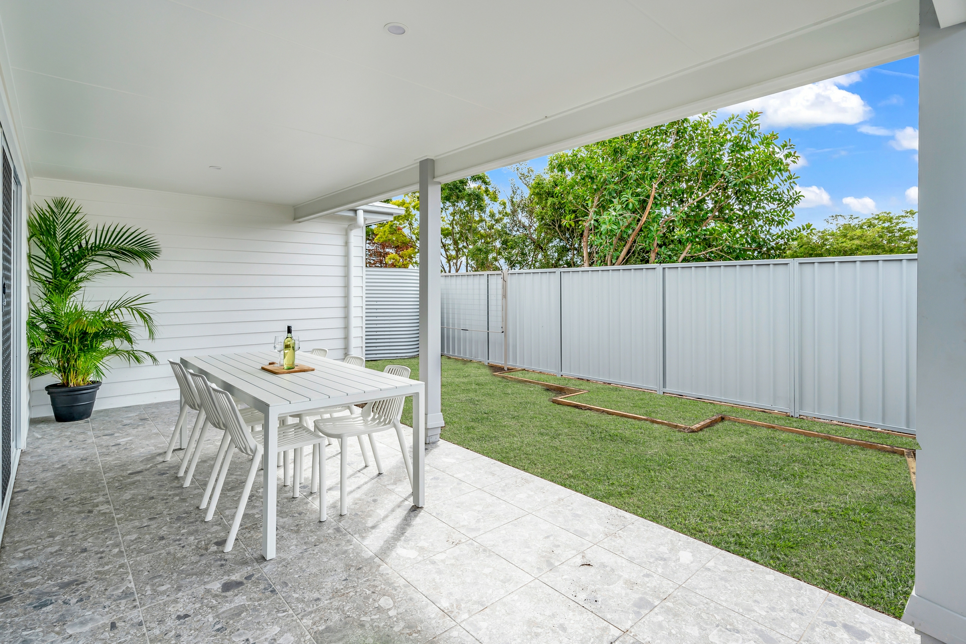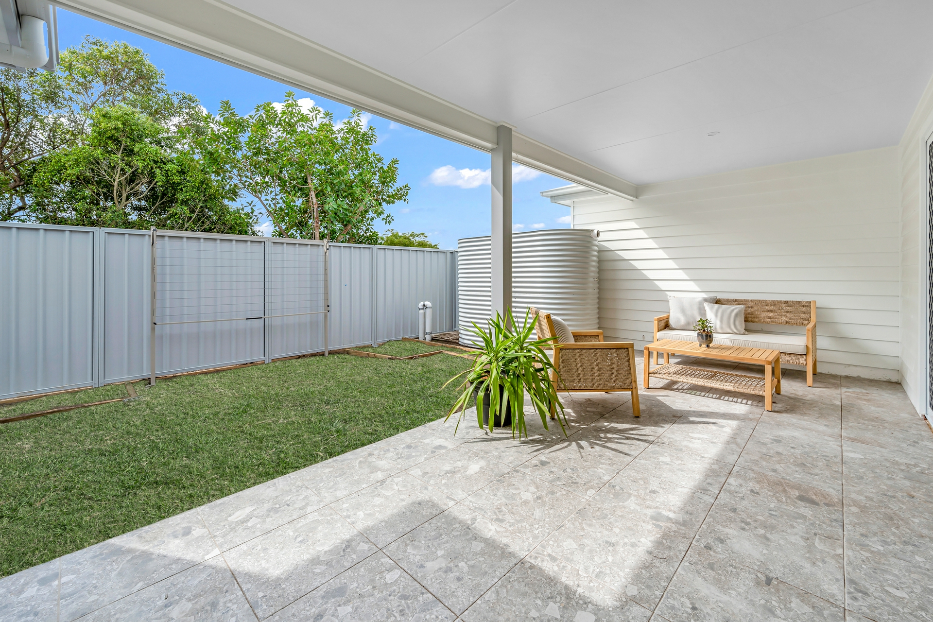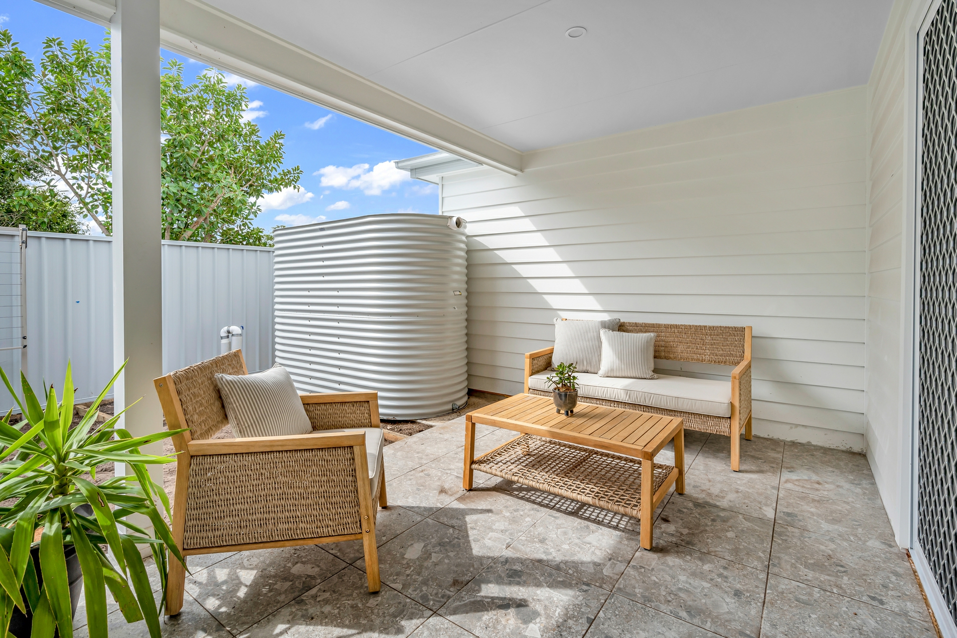 Rear outdoor undercover alfresco area overlooking private courtyards which are fully fenced with natural gas.