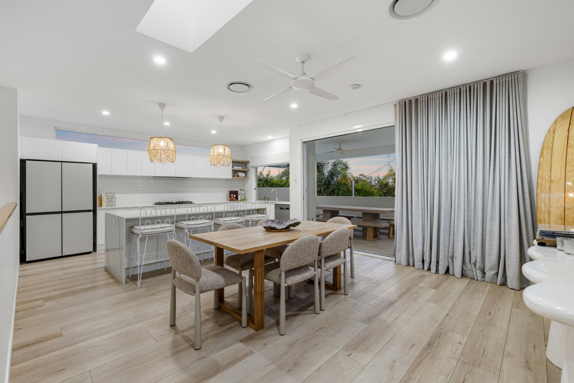 • Light-filled open plan living and dining area enhanced by durable Cortec hybrid flooring (scratch and water resistant)
