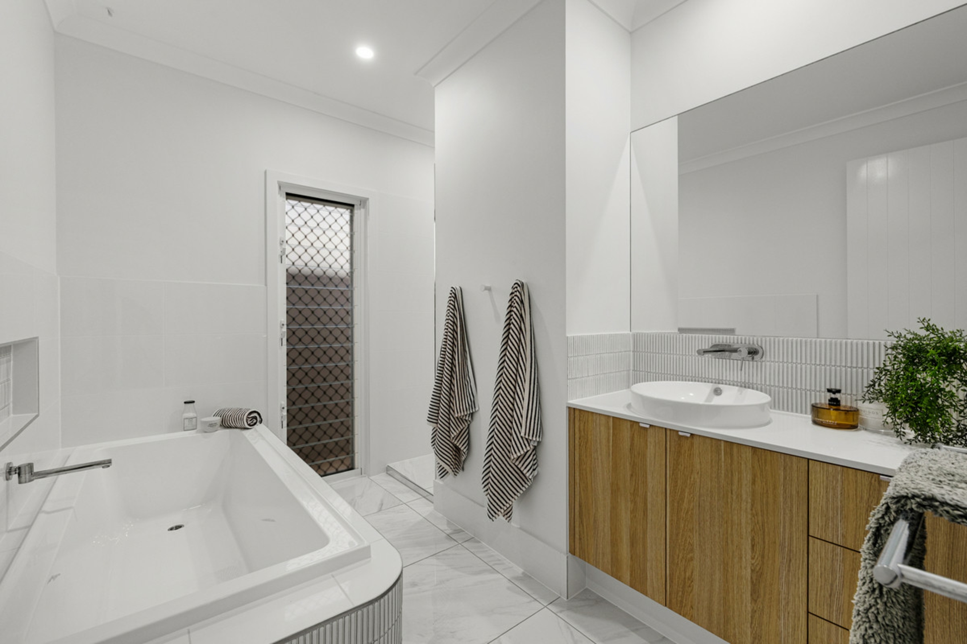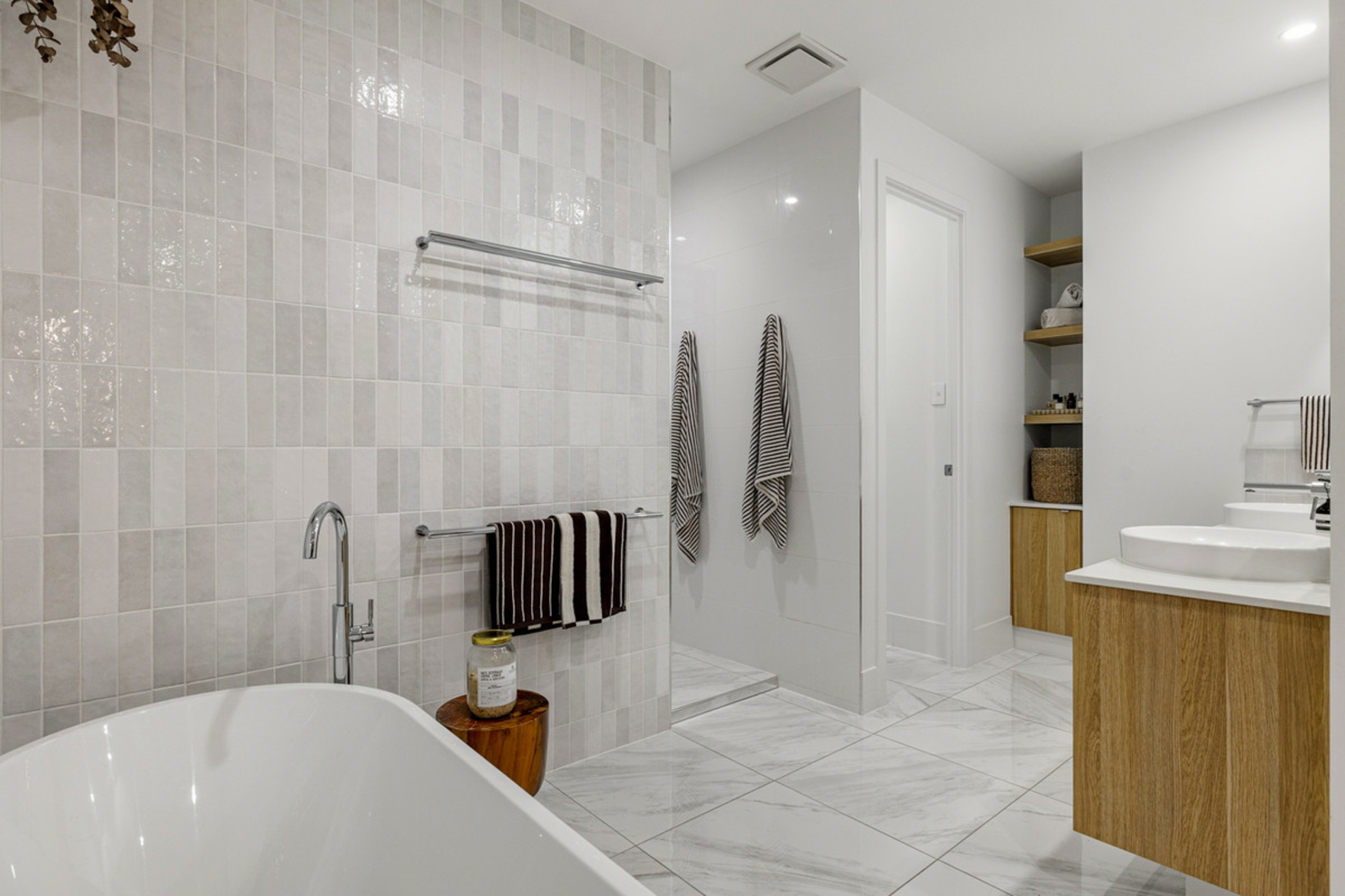 • Luxurious master suite complete with custom walk-in robe and a stunning open ensuite featuring freestanding bath, double vanity and oversized shower with dual rain head shower