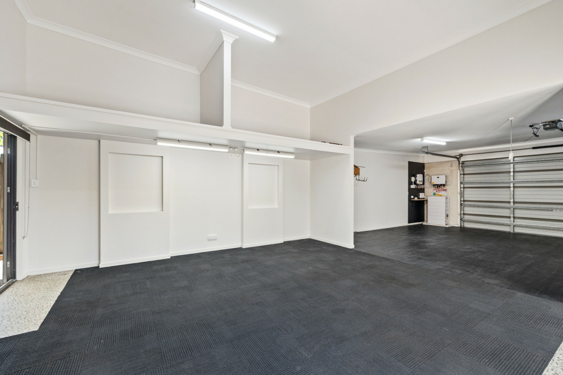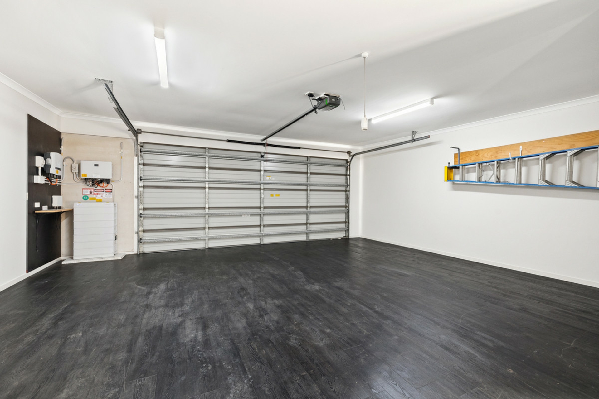 • Double lock-up garage with additional space for a third vehicle plus overhead storage