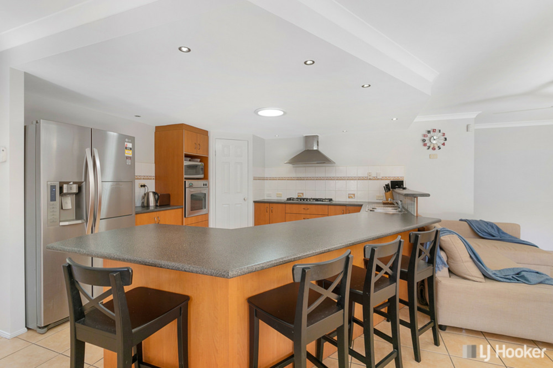 • Kitchen with 5 burner gas cook top, plumbing for the fridge, walk in pantry, breakfast bar and enormous bench space