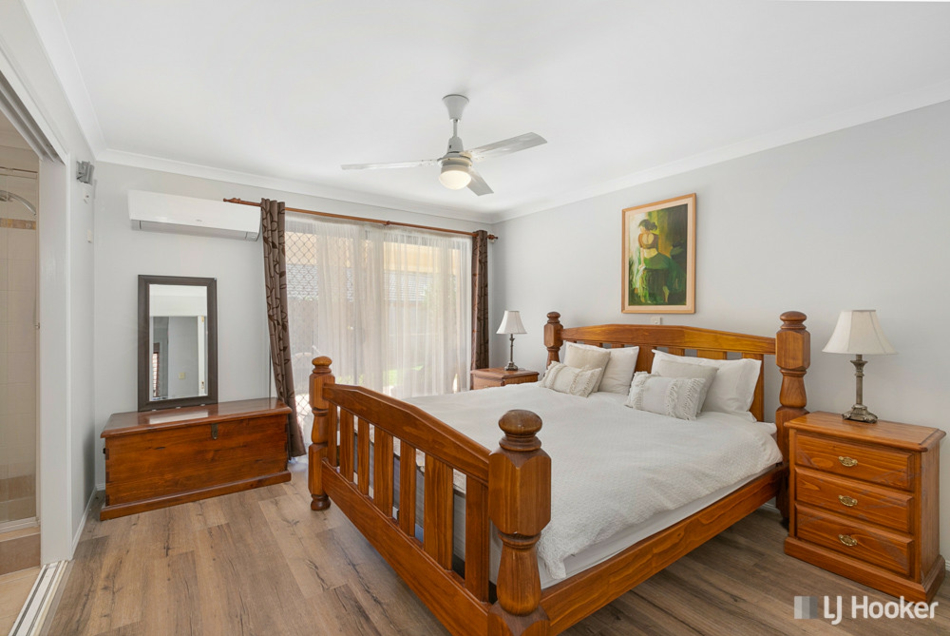 • Master bedroom with en-suite, large walk-in-robe, air conditioning, fan and sliding door leading out onto the alfresco area