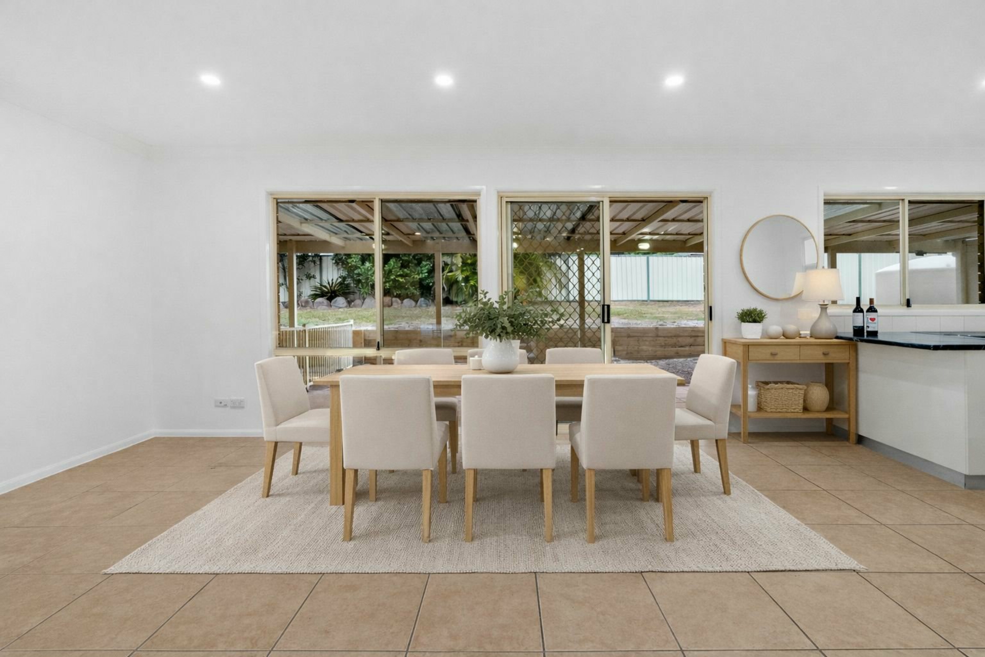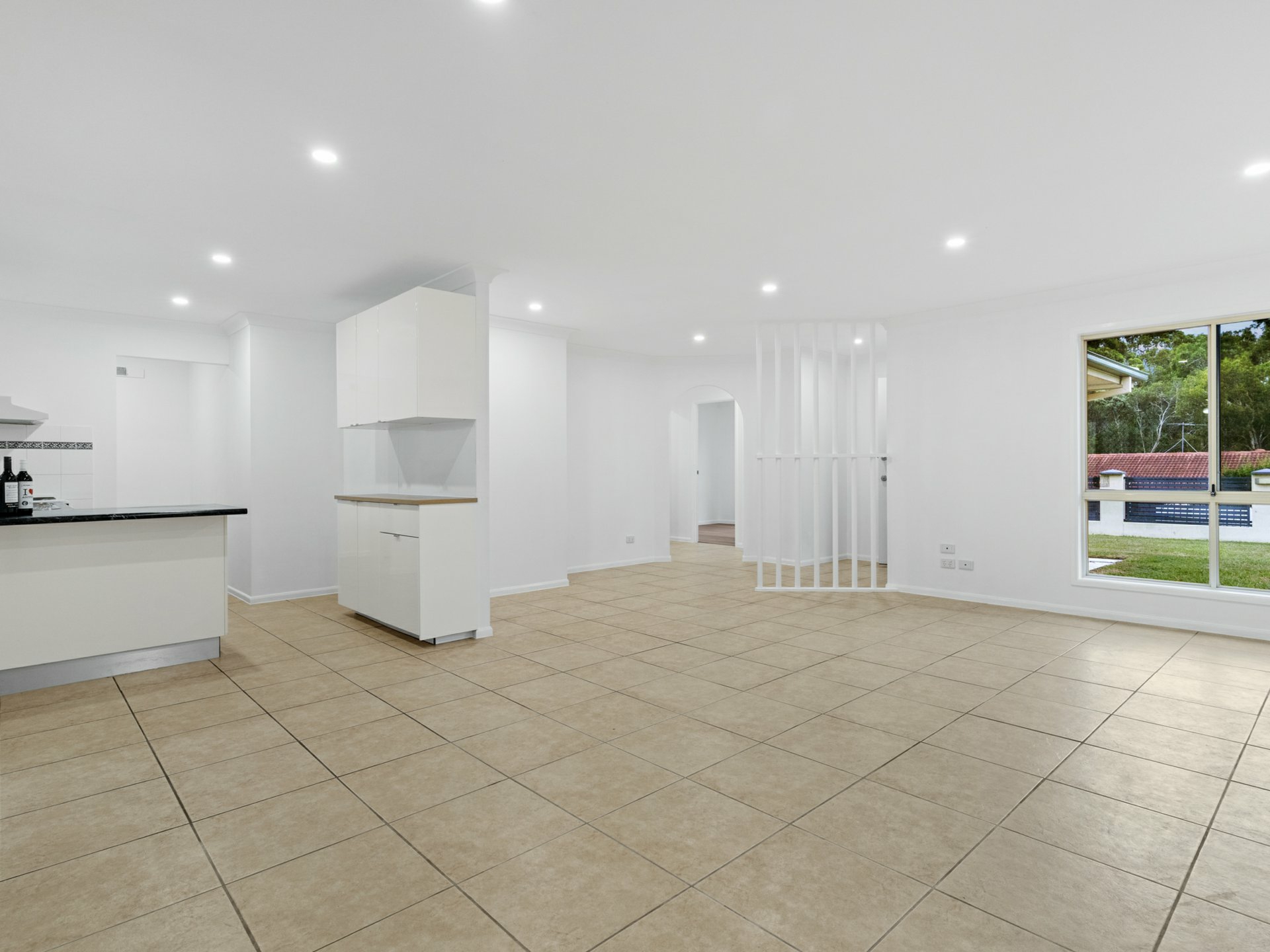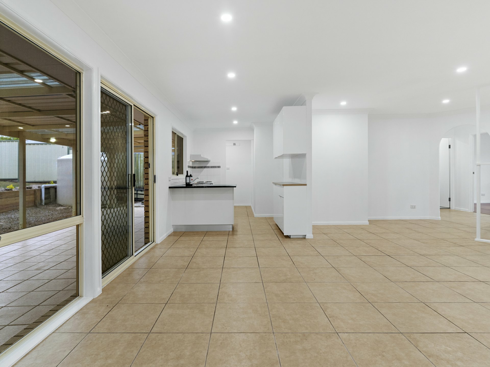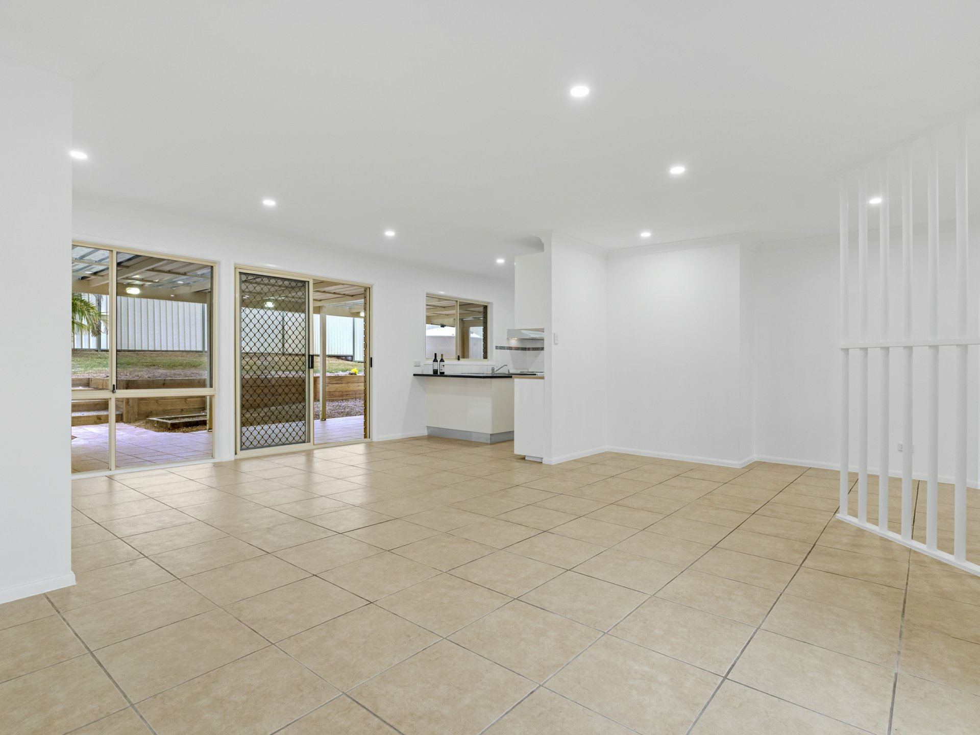 - Tiled lounge/dining beside a white & bright kitchen, huge undercover alfresco terrace