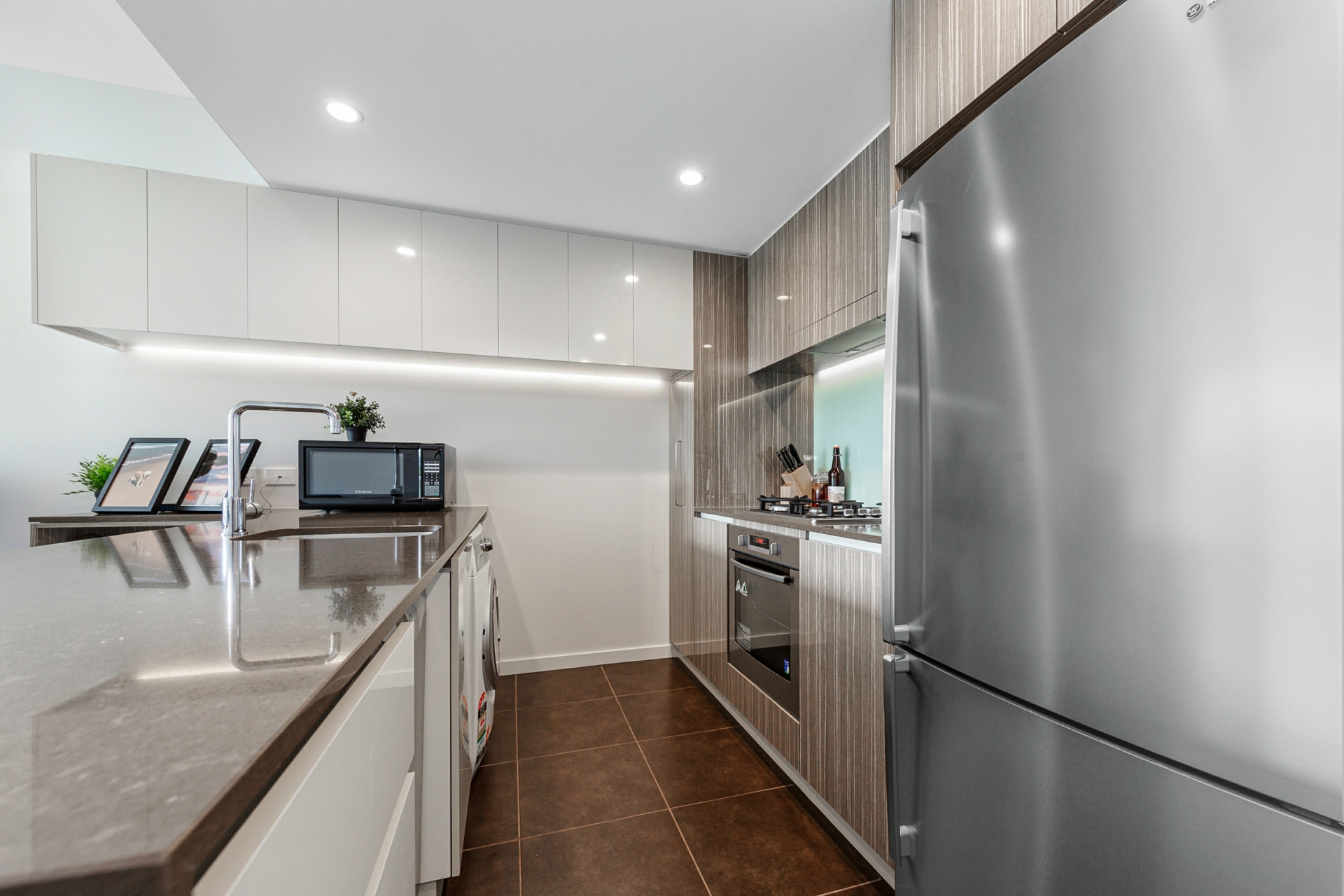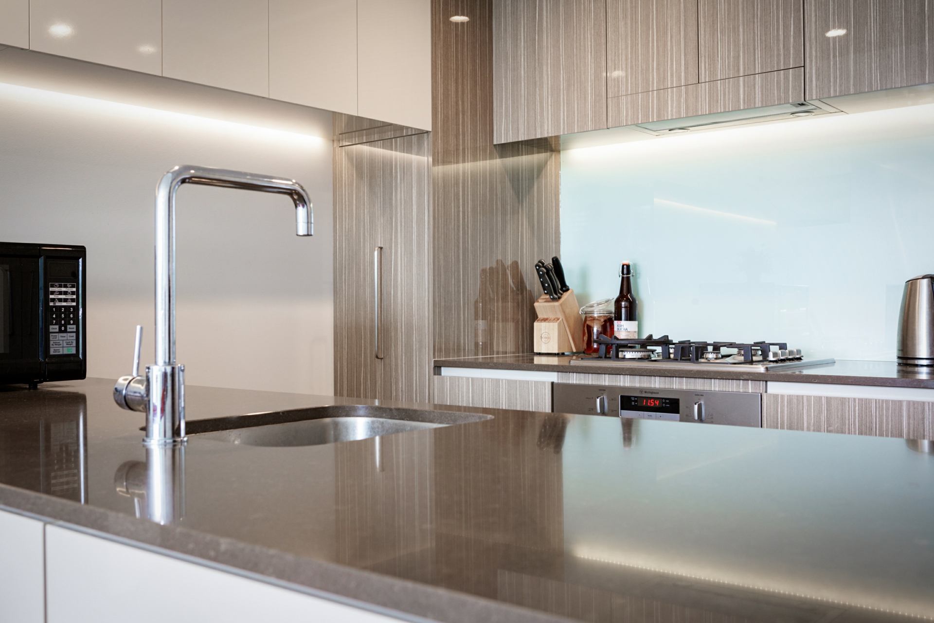 • Modern kitchen with stone benchtops, gas cooktop and quality appliances