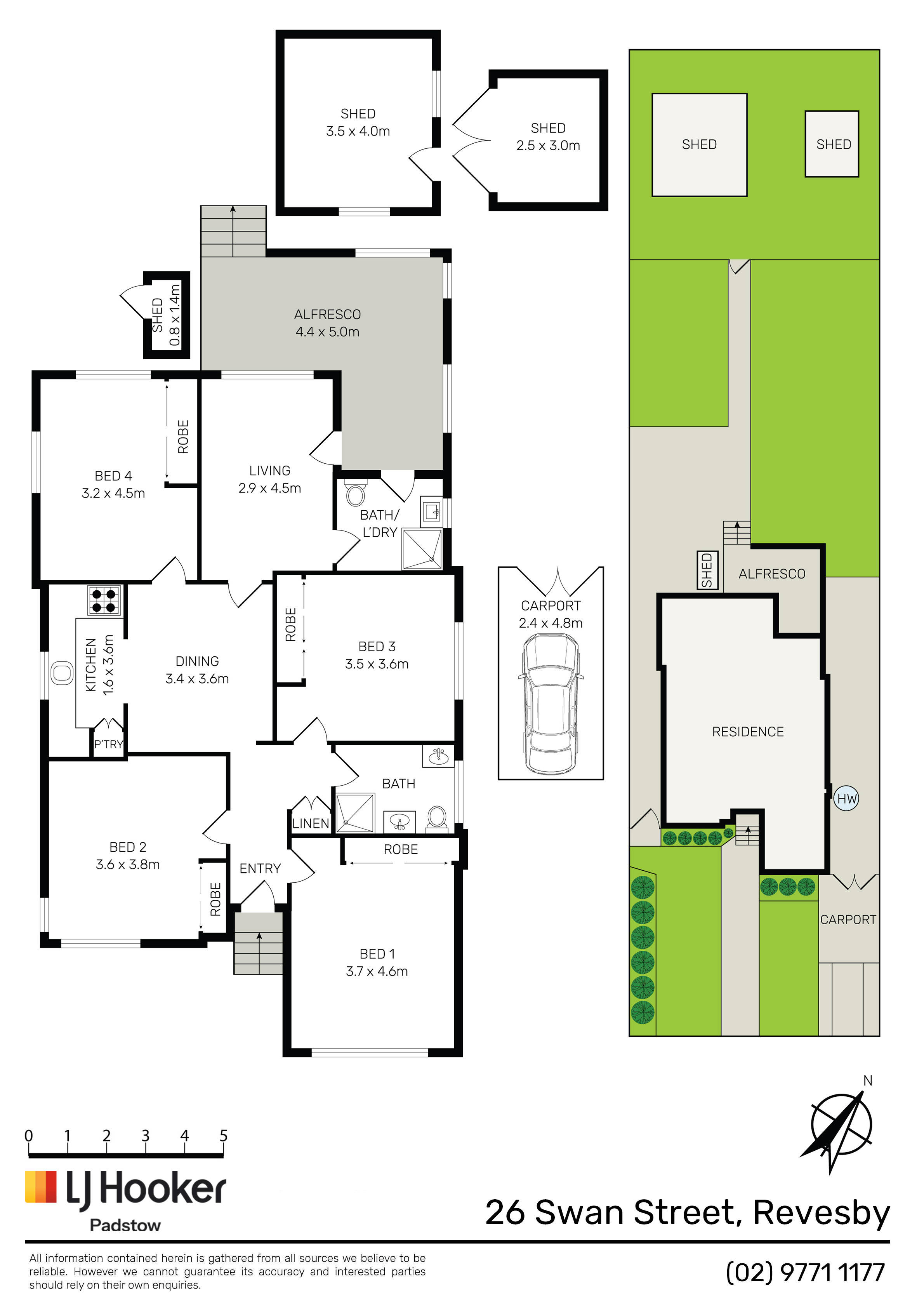 - Four bedrooms with built-in wardrobes, potential fifth bedroom or home office space