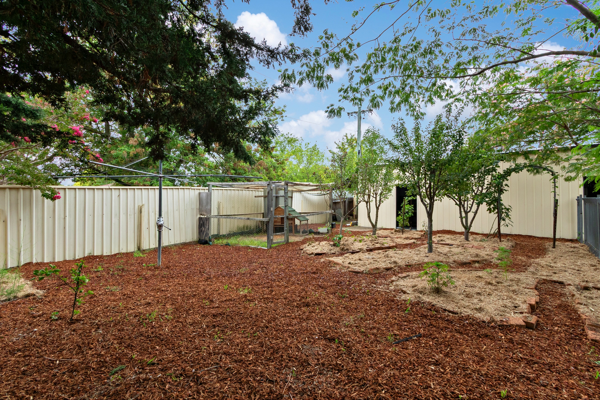 •Segregated backyard with established garden zone and level lawn with cubby house