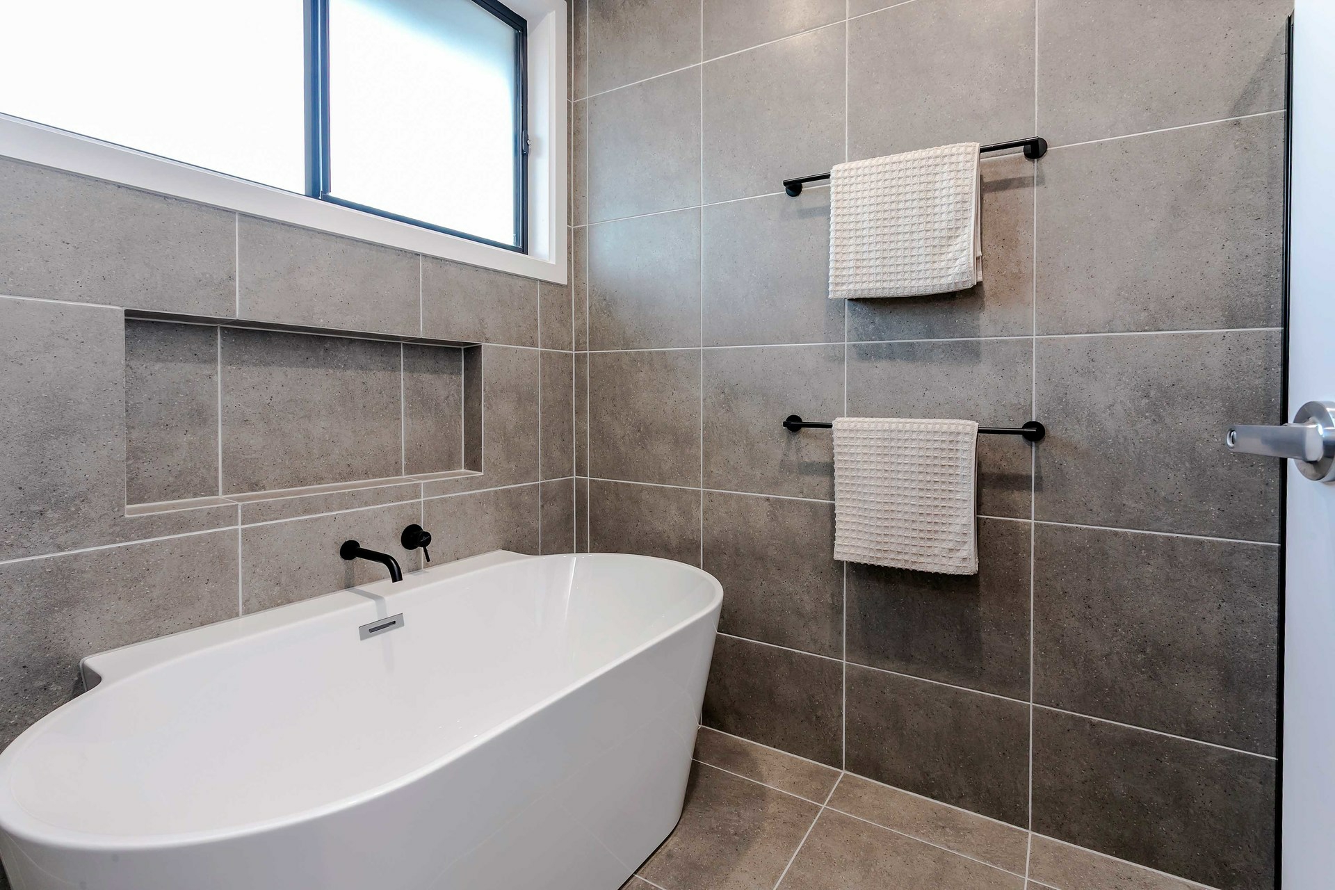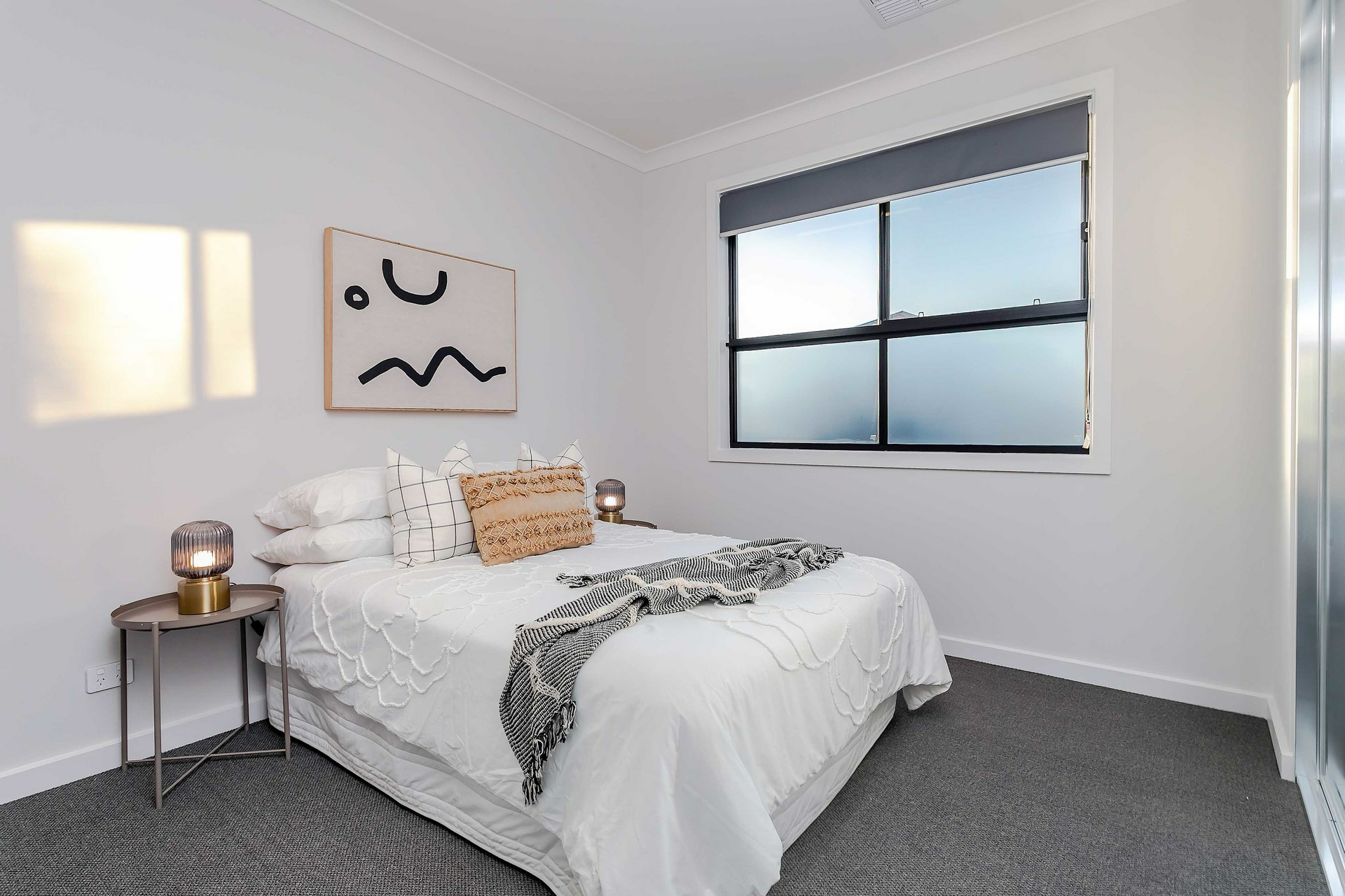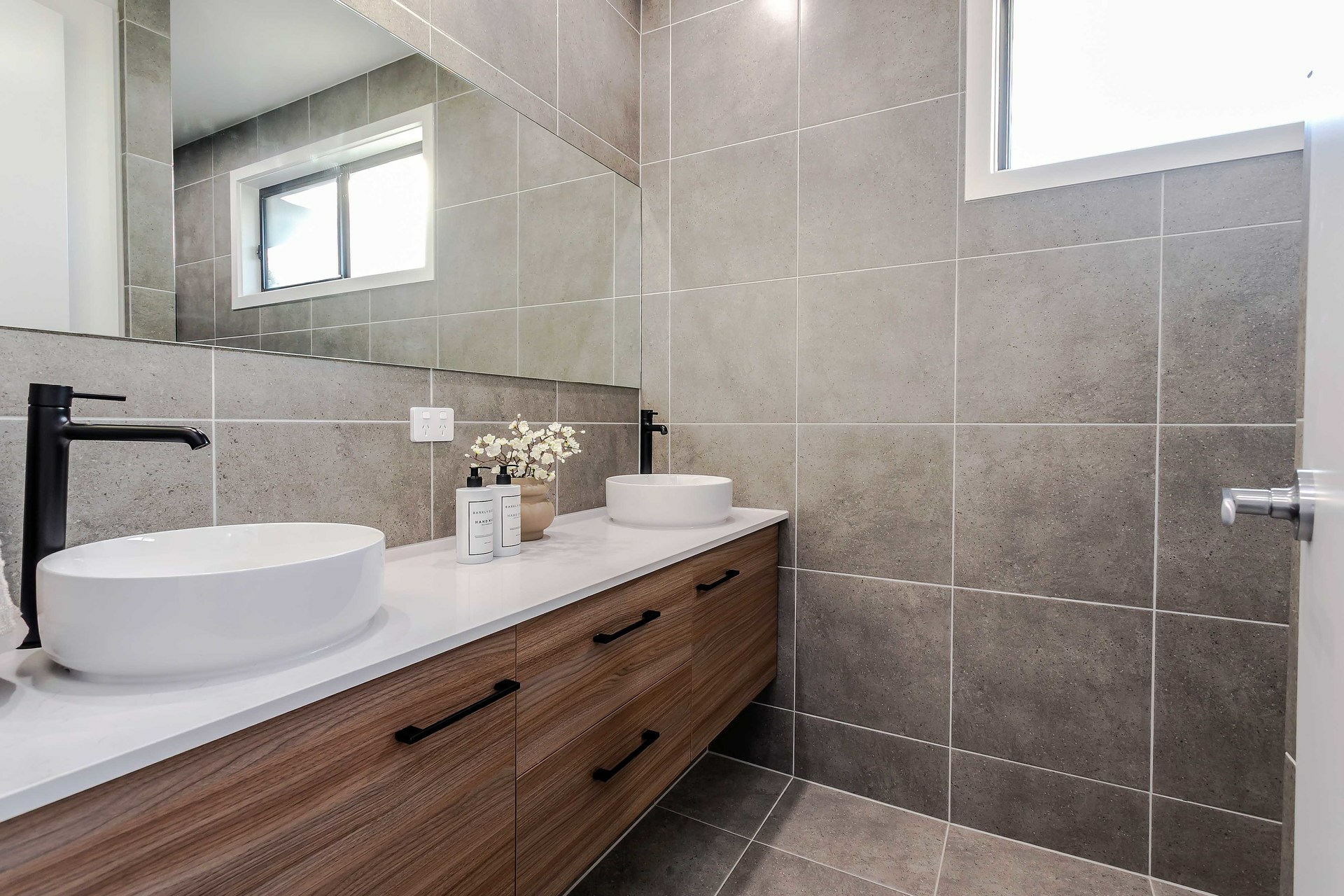 Also on the ground floor is the spacious master bedroom, complete with a walk-in wardrobe and a luxurious ensuite showcasing floor-to-ceiling tiles, dual vanities and a stone benchtop. A guest-friendly powder room adds further practicality to the layout.