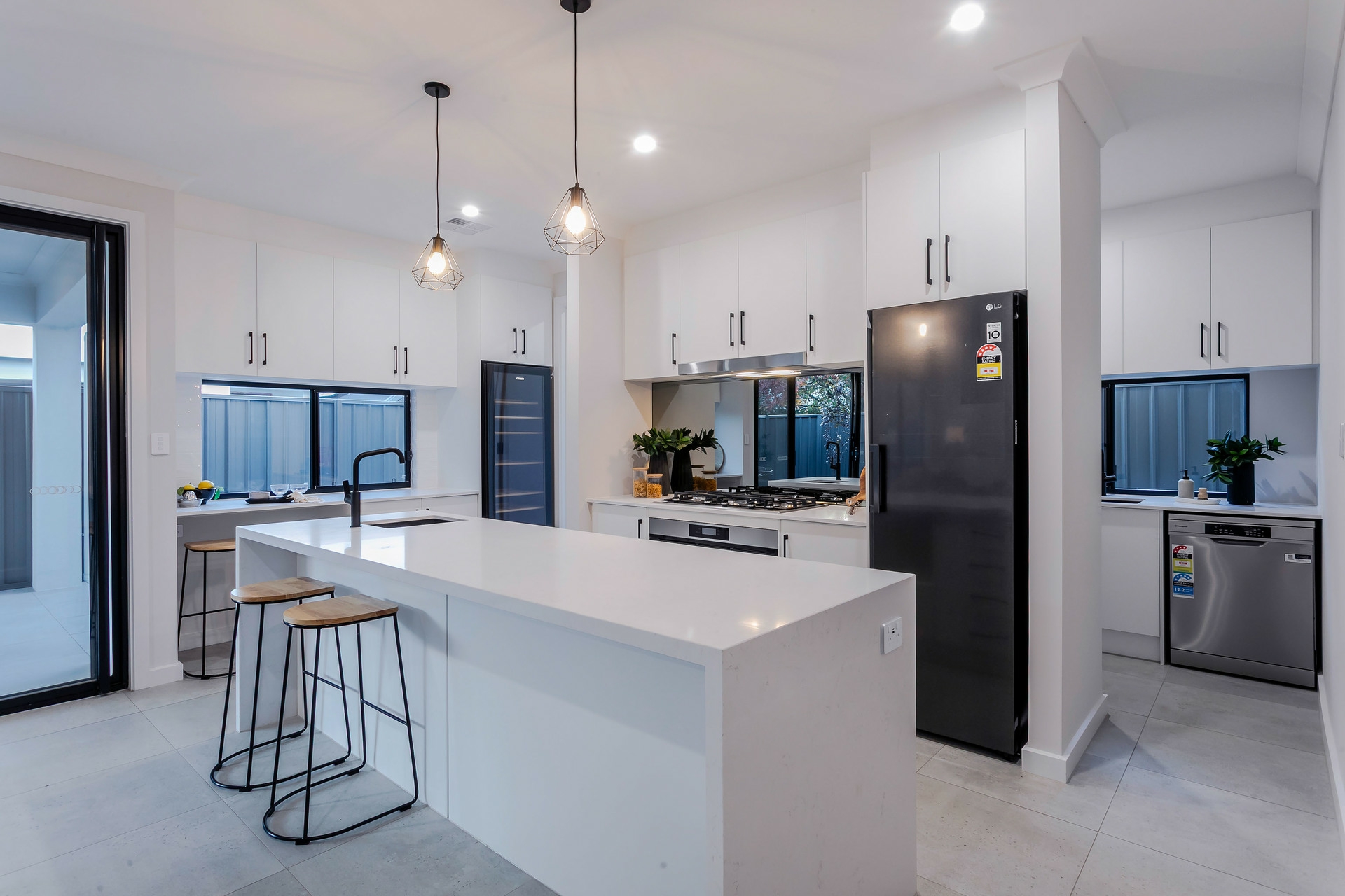 The ground floor serves as the heart of the home, featuring an open-plan family and dining area seamlessly connected to the kitchen. The kitchen is equipped with stone benches, high-quality appliances, including a five-burner gas cooktop, oversized oven and dual dishwashers. A tucked-away butler's pantry offers generous storage space, while the conveniently located laundry on the opposite side provides direct access to the backyard.