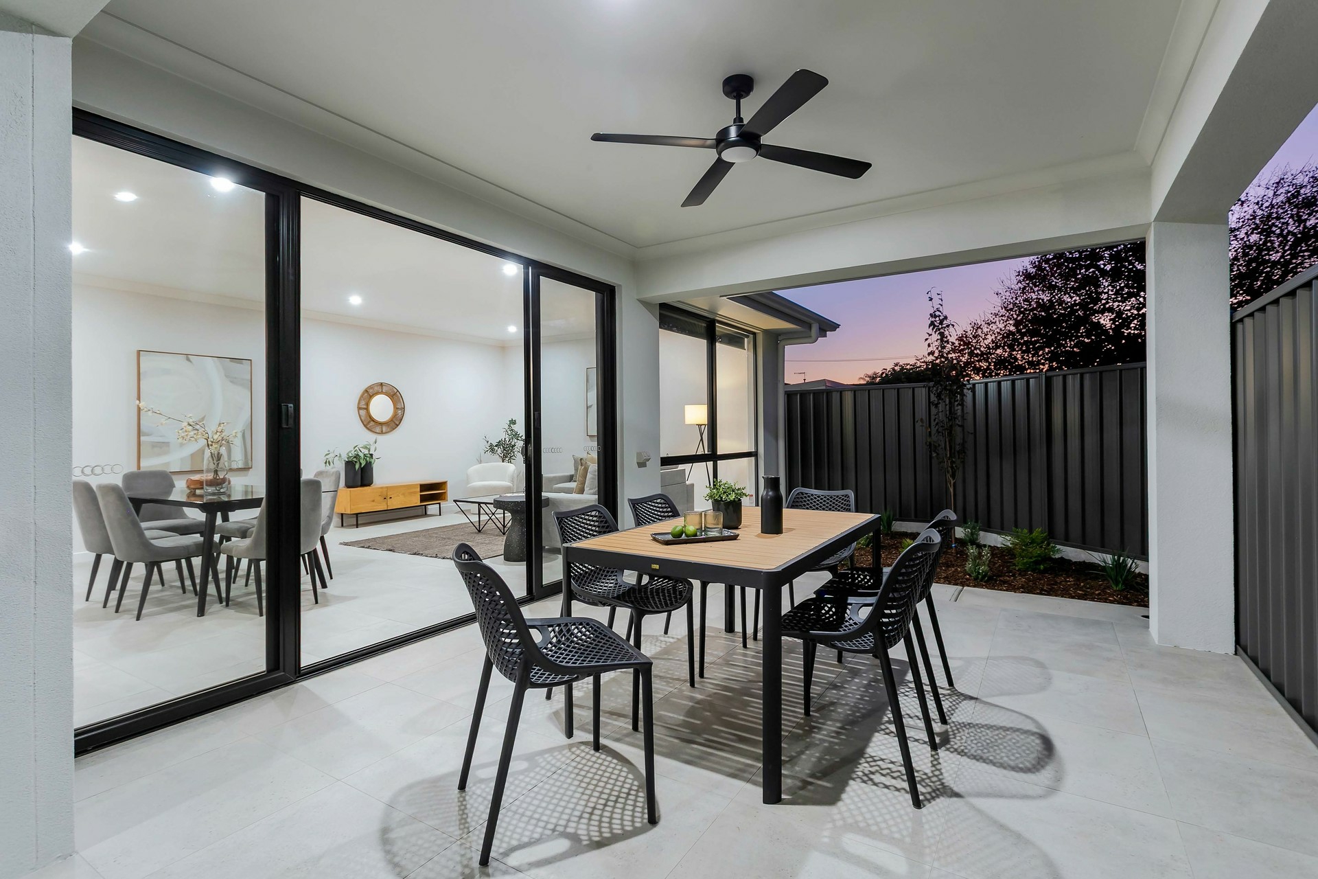 Step outside to the alfresco area, accessed directly from the main living space, enhanced by a ceiling fan and framed by low-maintenance gardens. Parking is plentiful, with a double garage featuring a secure panel-lift door, plus additional driveway space.