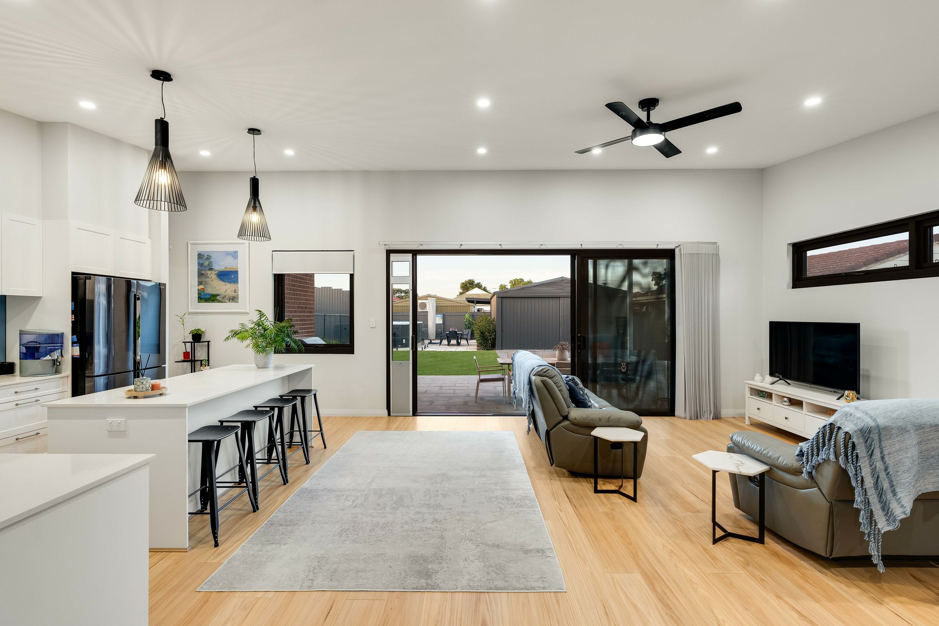 Designed to impress & crafted to endure, with captivating raked ceilings. At the heart of the home lies an expansive open-plan lounge and dining space - a setting of scale and warmth.