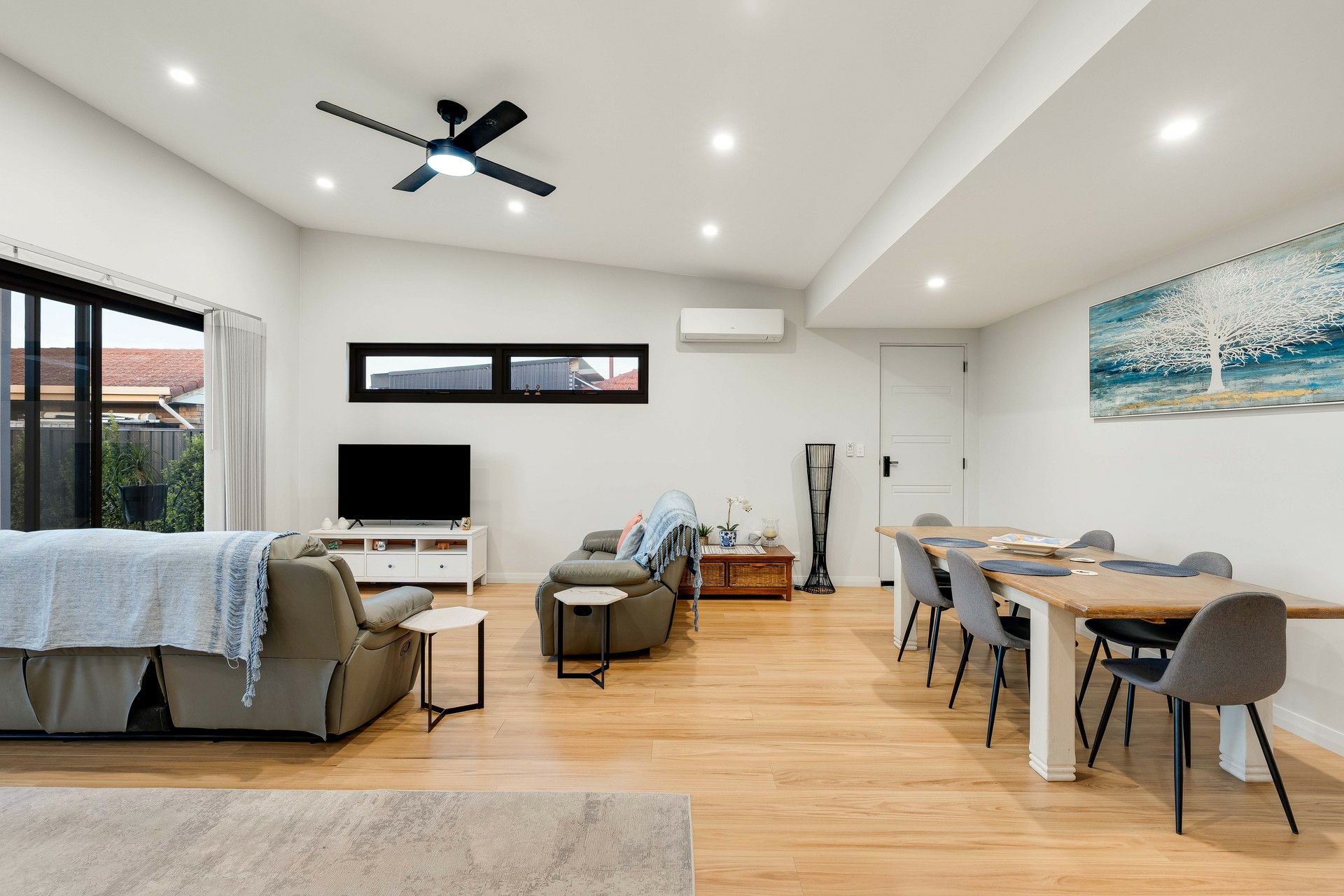 Refined accommodation featuring three generously proportioned bedrooms provide comfort and tranquillity, each complete with built-in robes and ceiling fans. The master suite is privately appointed with a walk-in robe and elegant ensuite, while the central bathroom services the home with understated style.