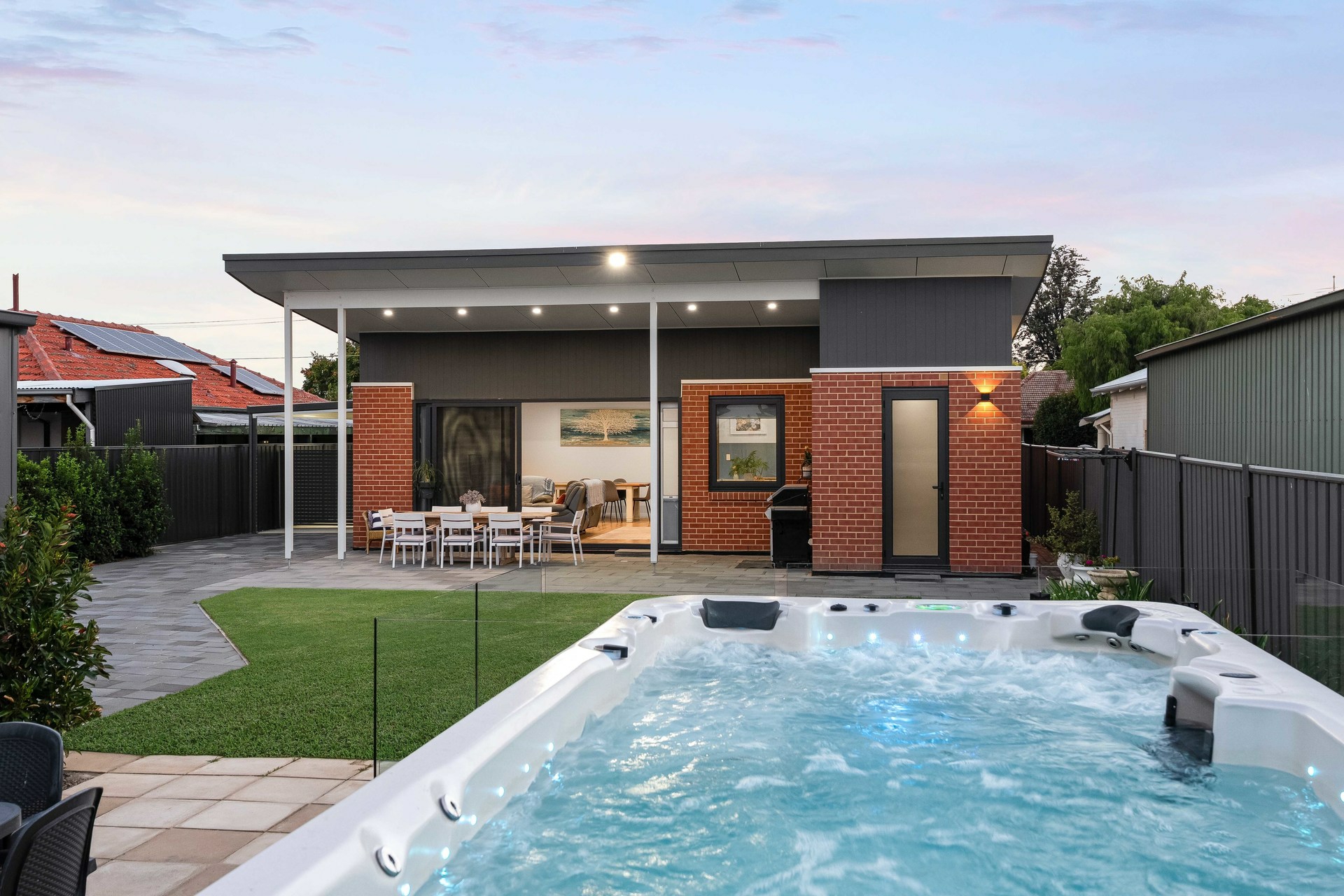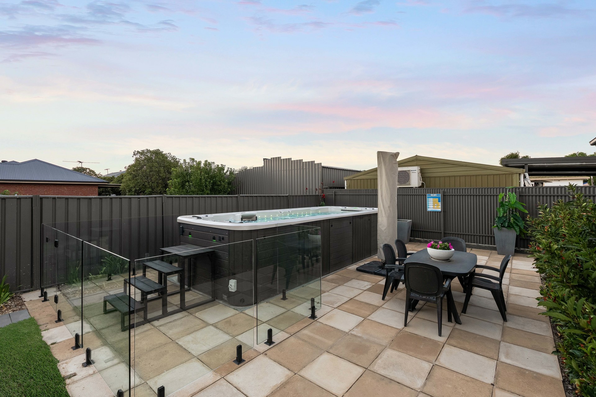 Resort-Inspired outdoor living - Beyond the living spaces, a private oasis awaits. A Vortex Aqualap swim spa, complete with multiple swim jets and ambient mood lighting, offers both rejuvenation and recreation. The north-facing rear garden captures natural light throughout the day, while fully fenced grounds and an automated front gate provide privacy and security.