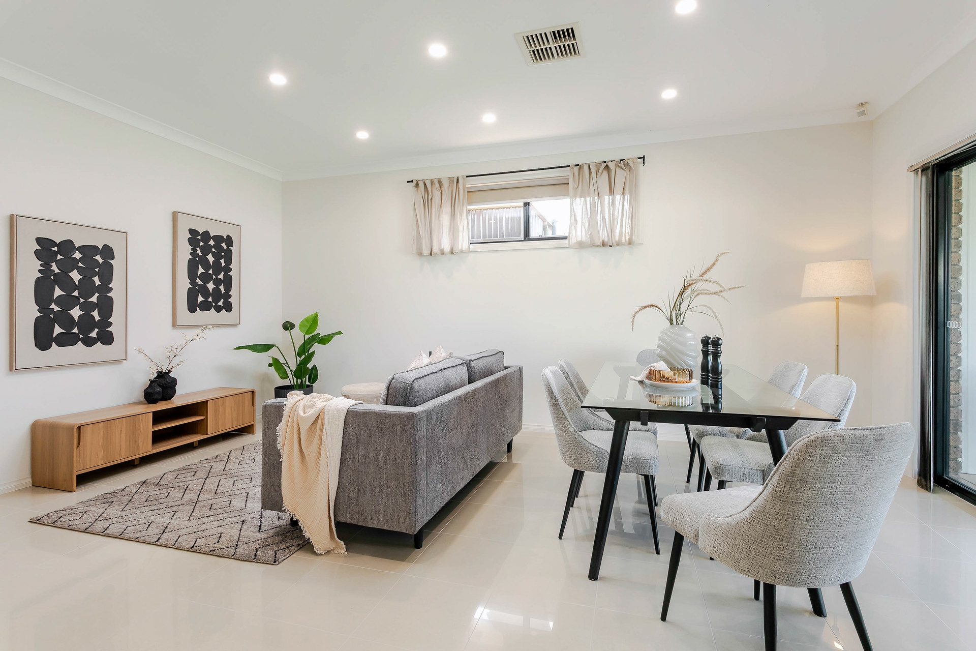 A separate living room provides valuable versatility, ideal as a media lounge, quiet retreat, or additional family space.
