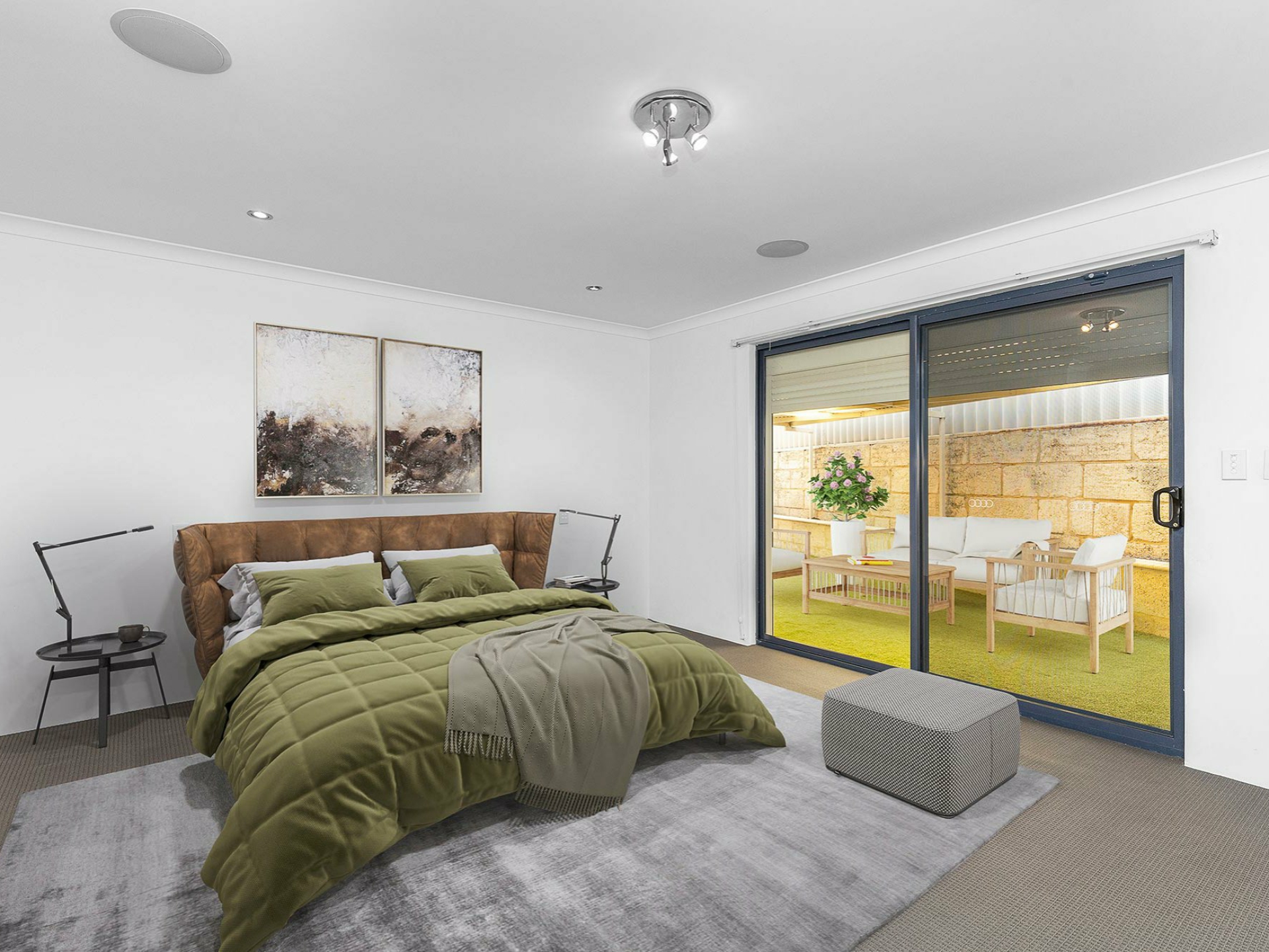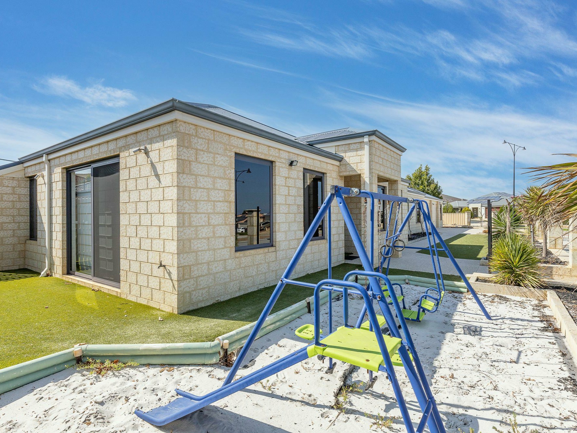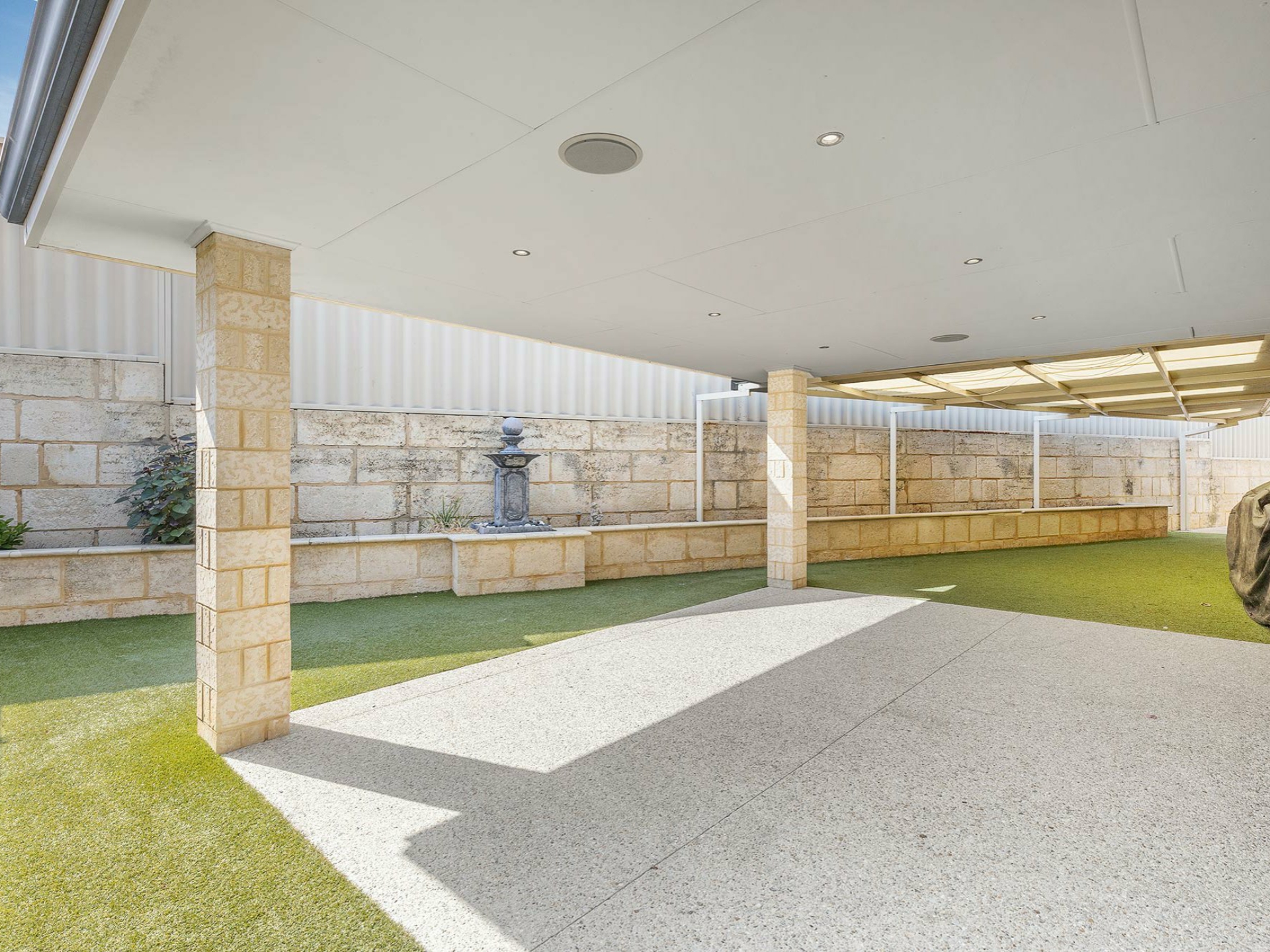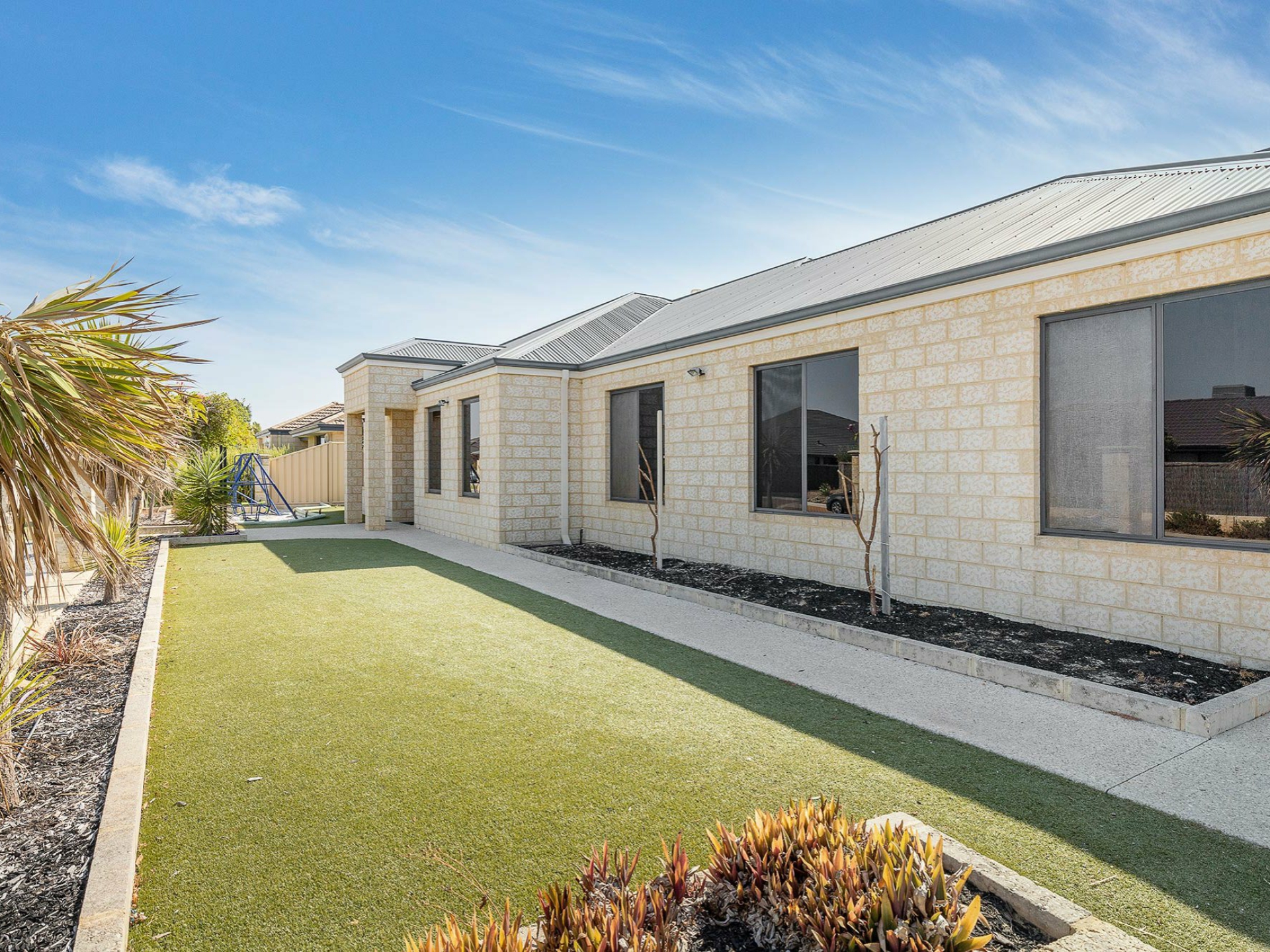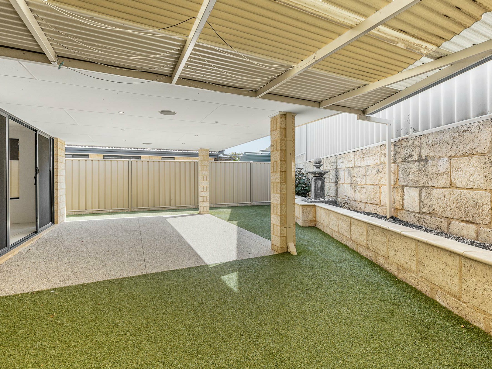 The outdoor space has been finished with low maintenance raised garden beds and artificial turf for all year round entertaining.