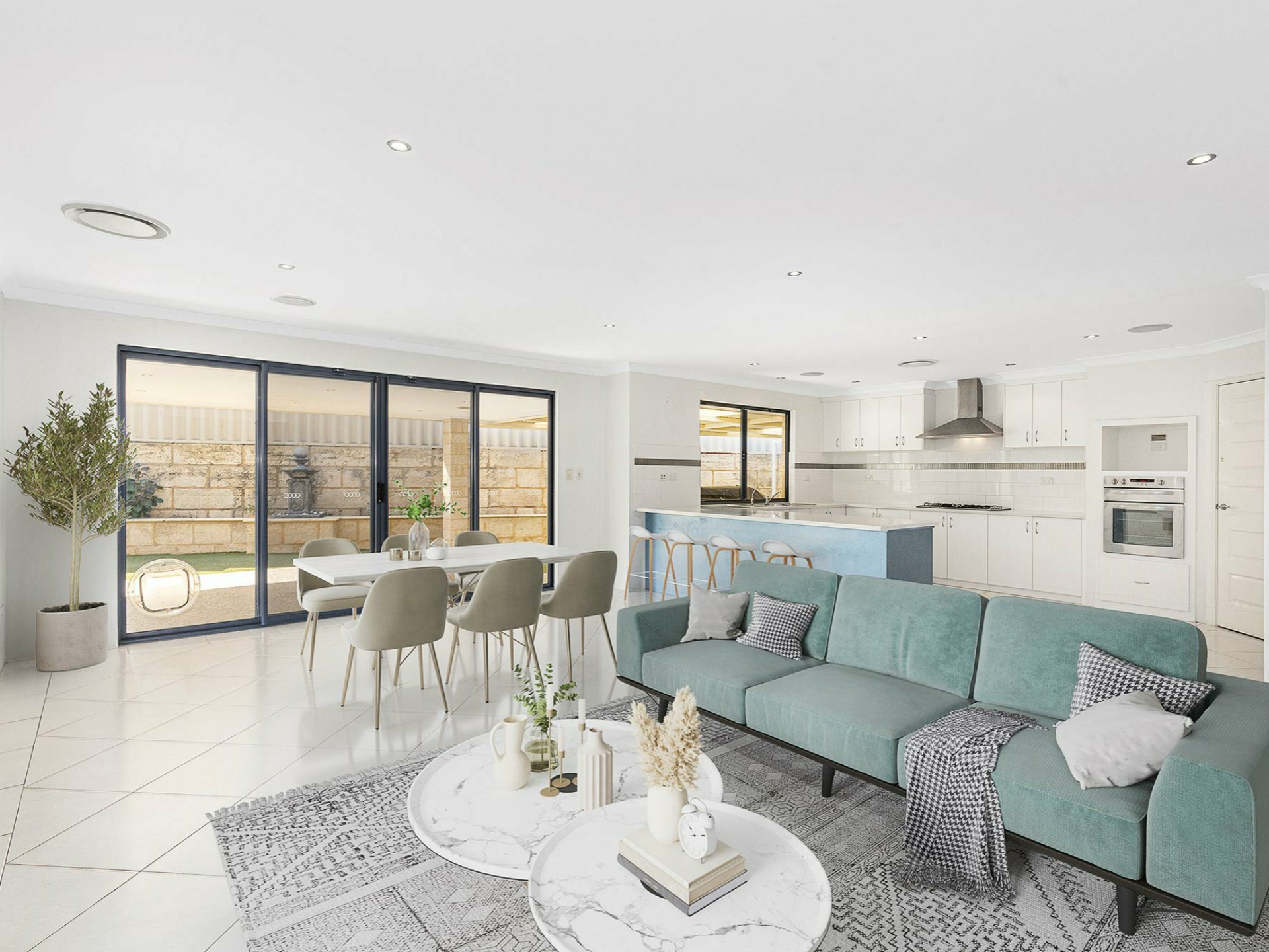 The Kitchen is well appointed with stone benchtops, 900mm appliances and a walk-in pantry.