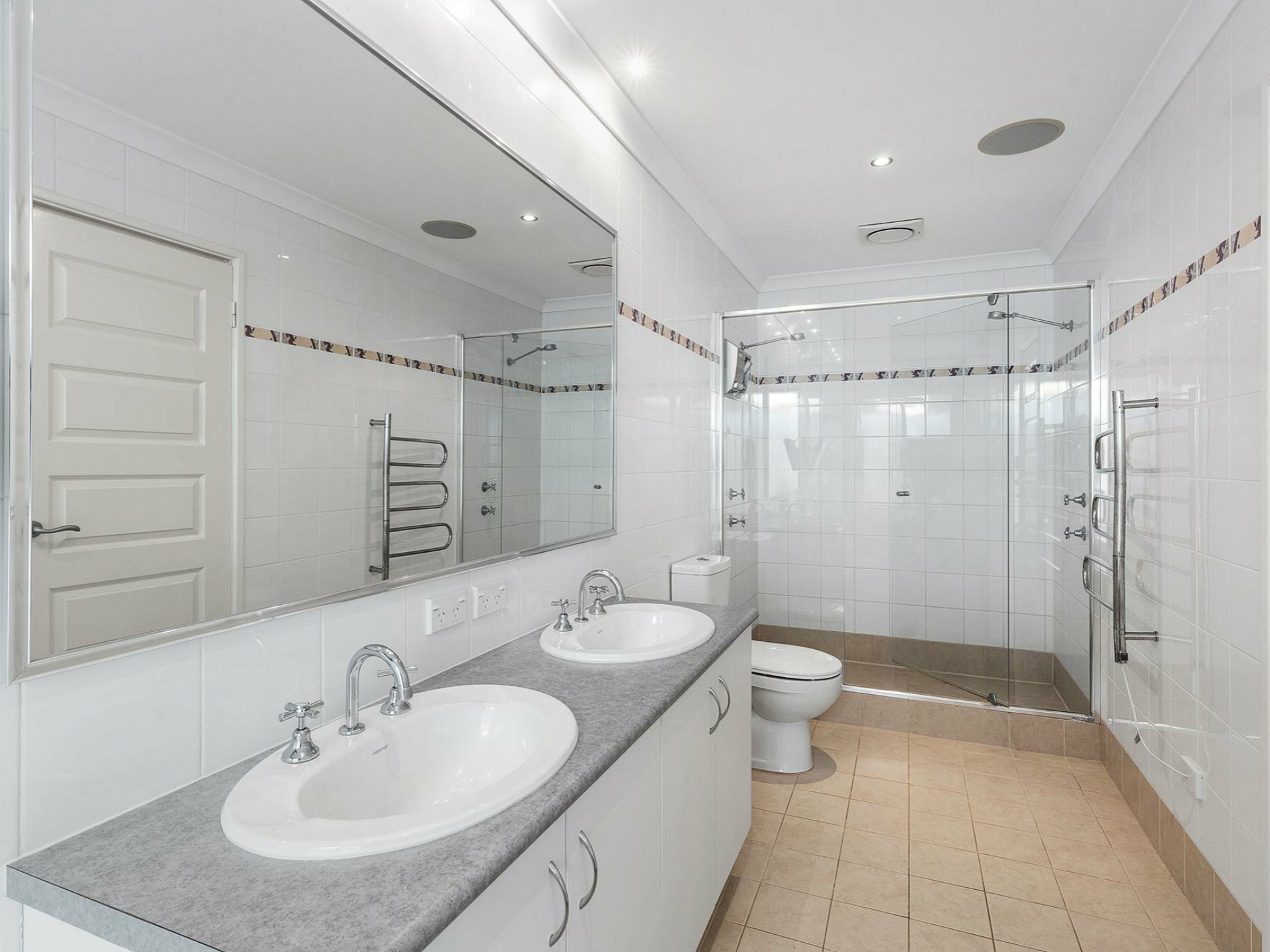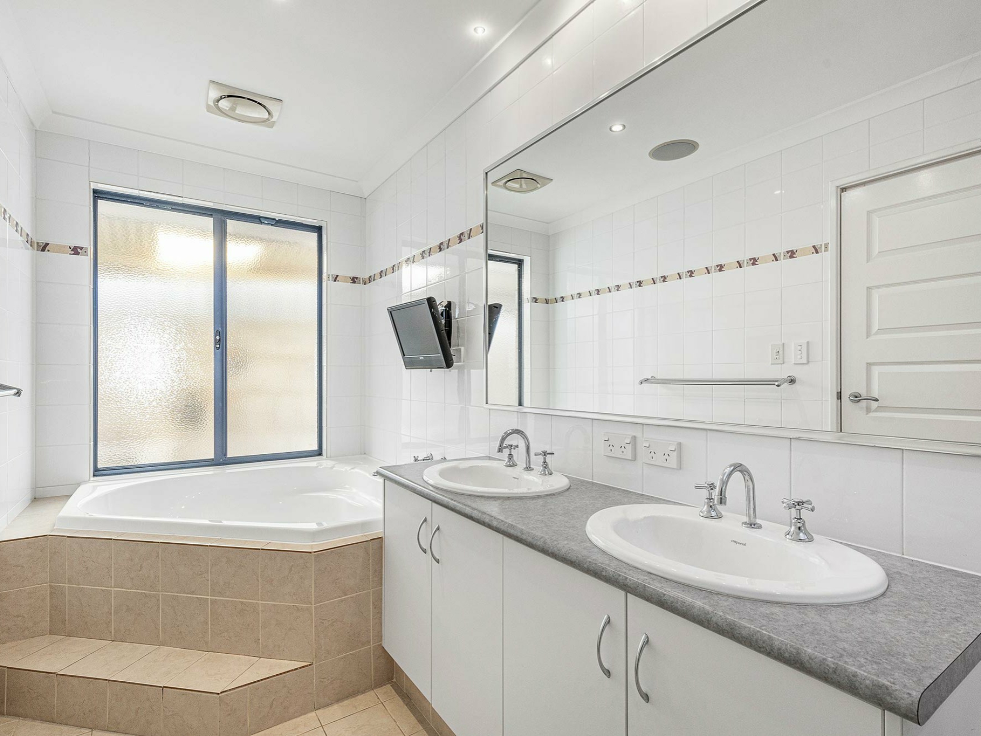 The master has 2 walk in robes and a huge ensuit with double vanity sinks.