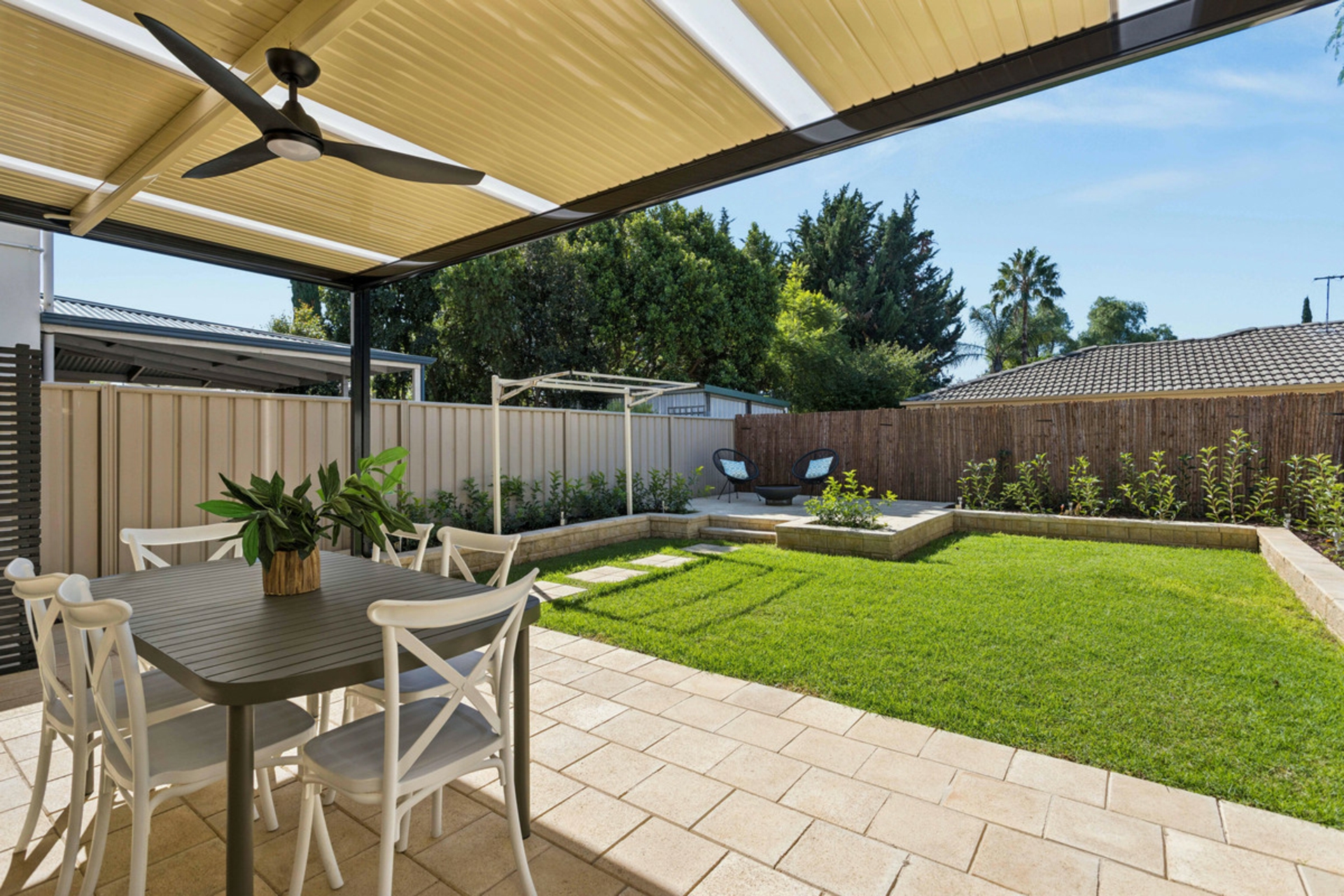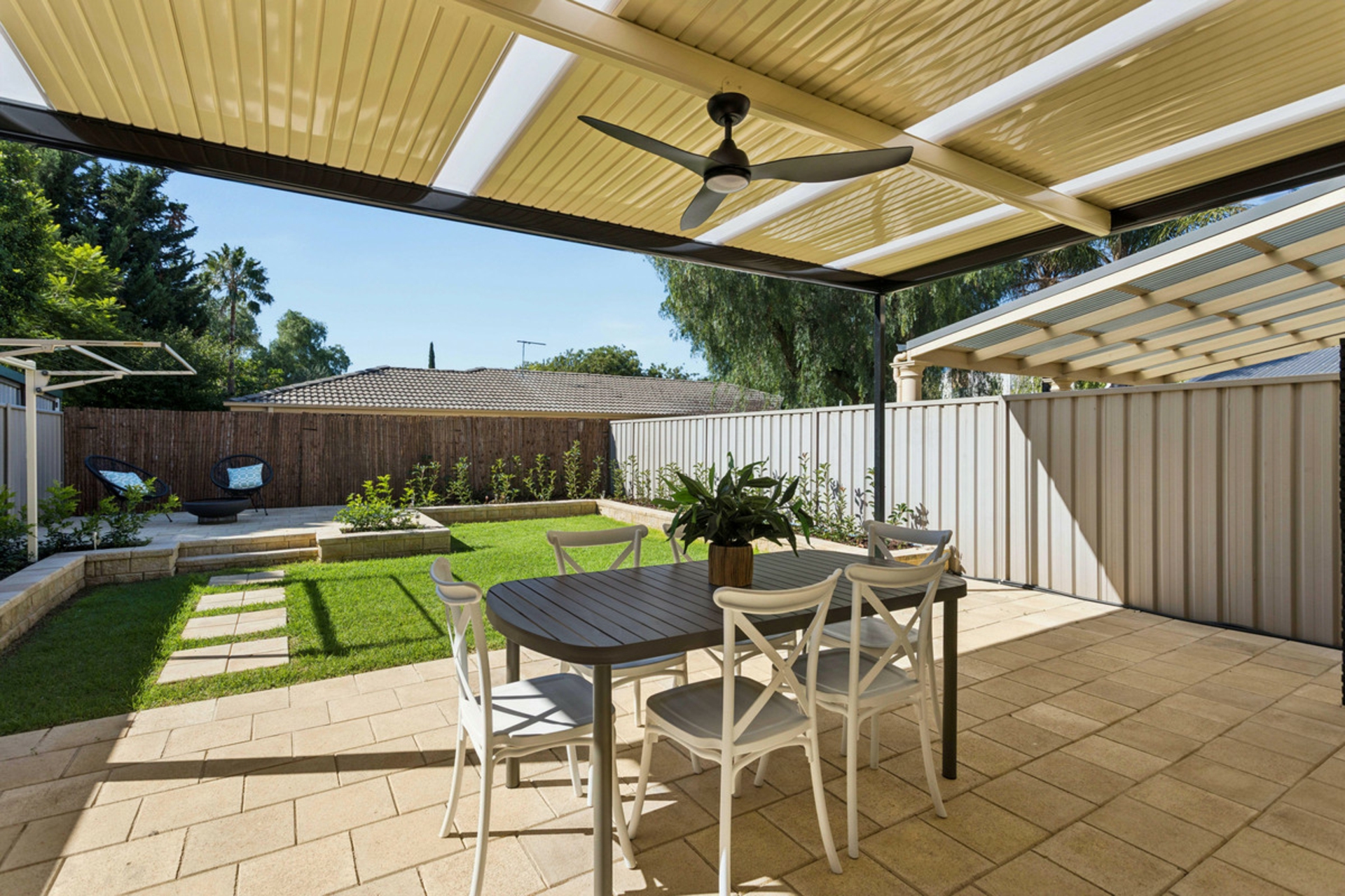 • Covered outdoor entertaining area with pergola, ideal for year-round gatherings