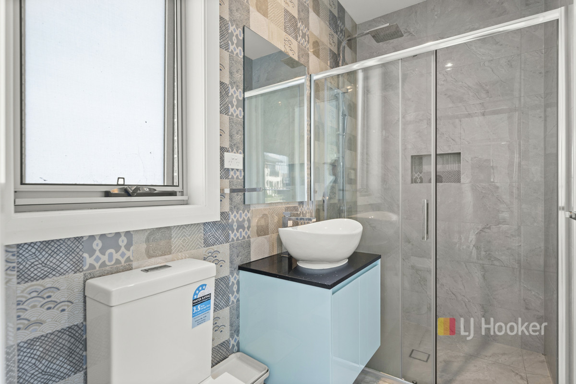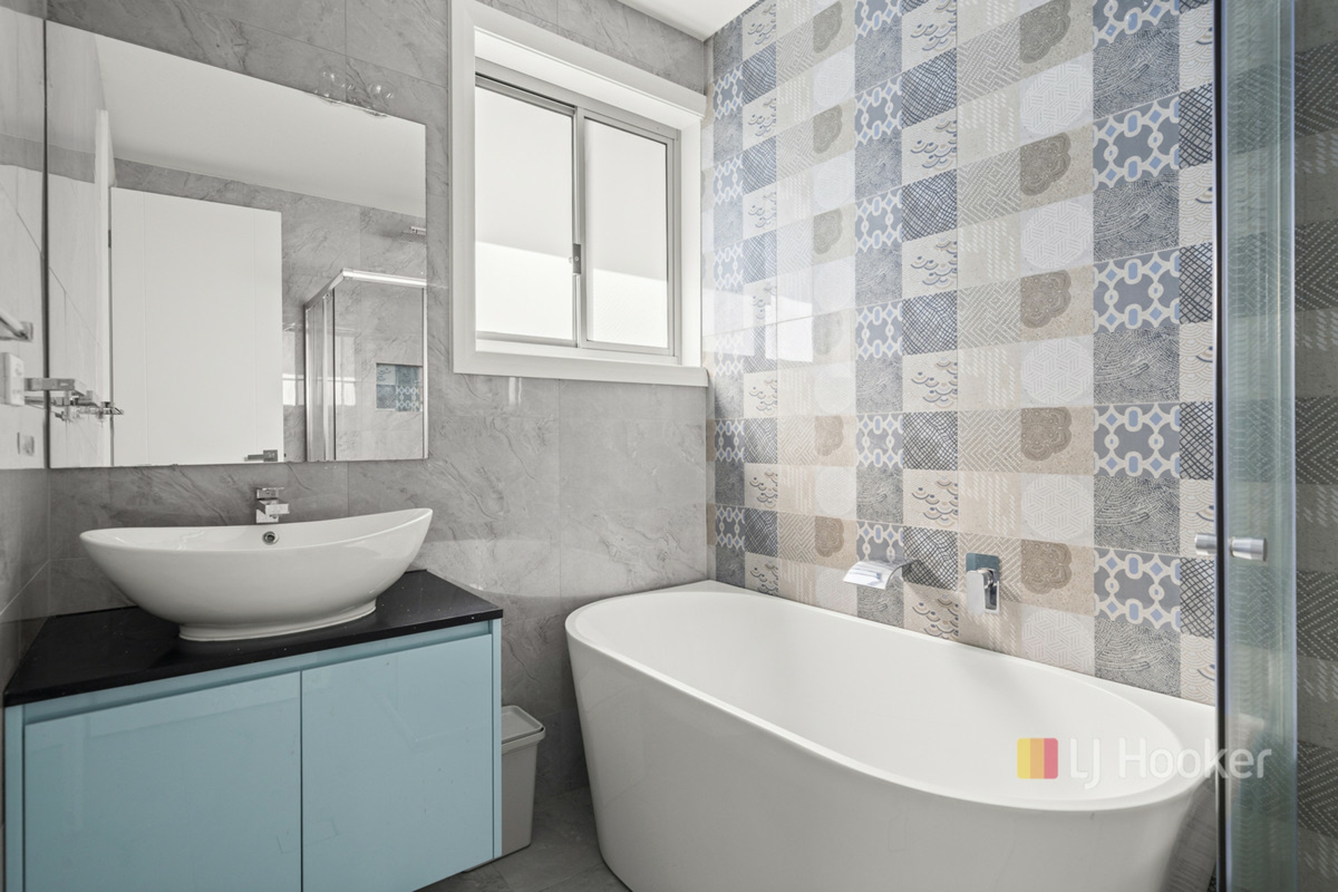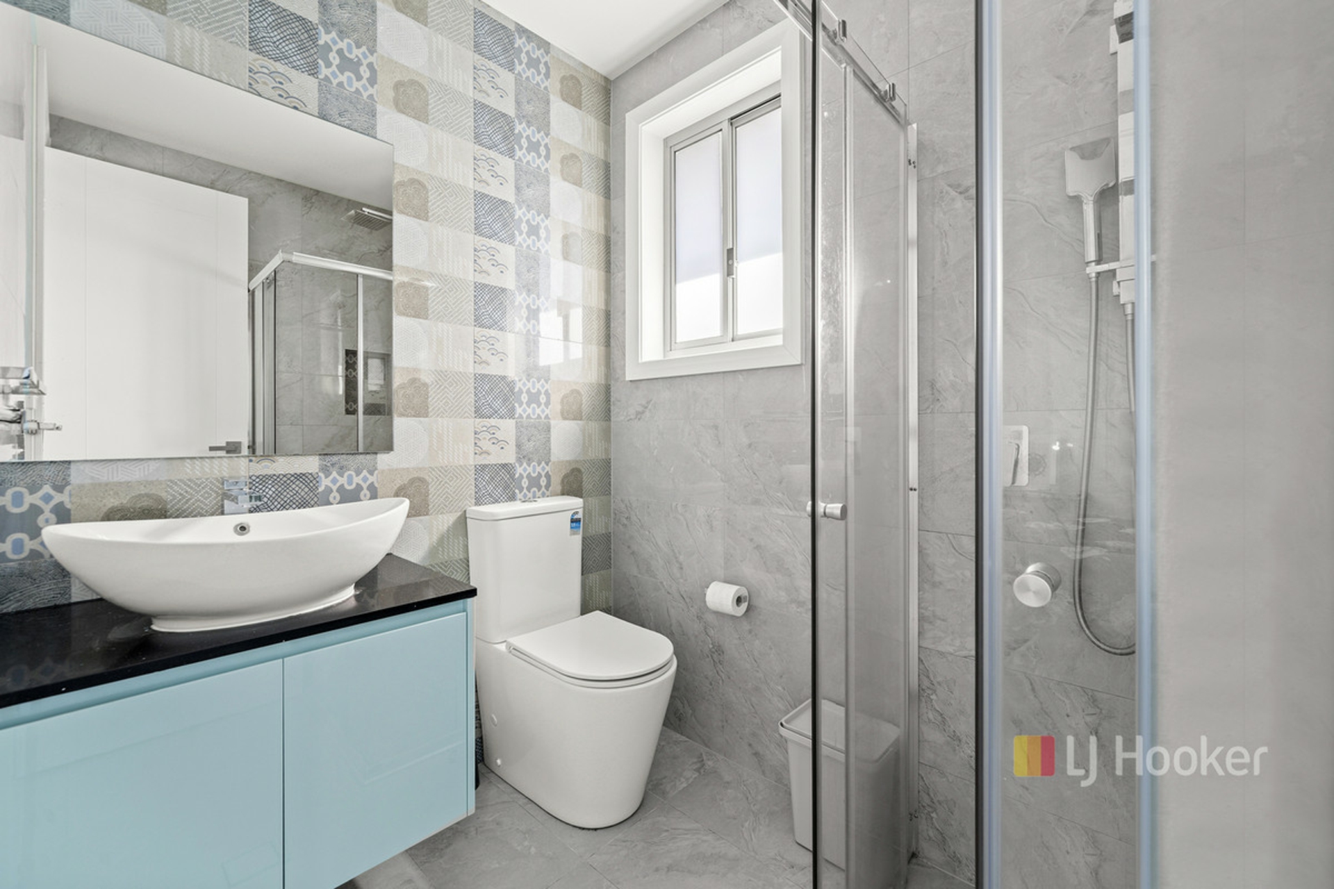 - Stylish bathrooms featuring floor-to-ceiling tiling