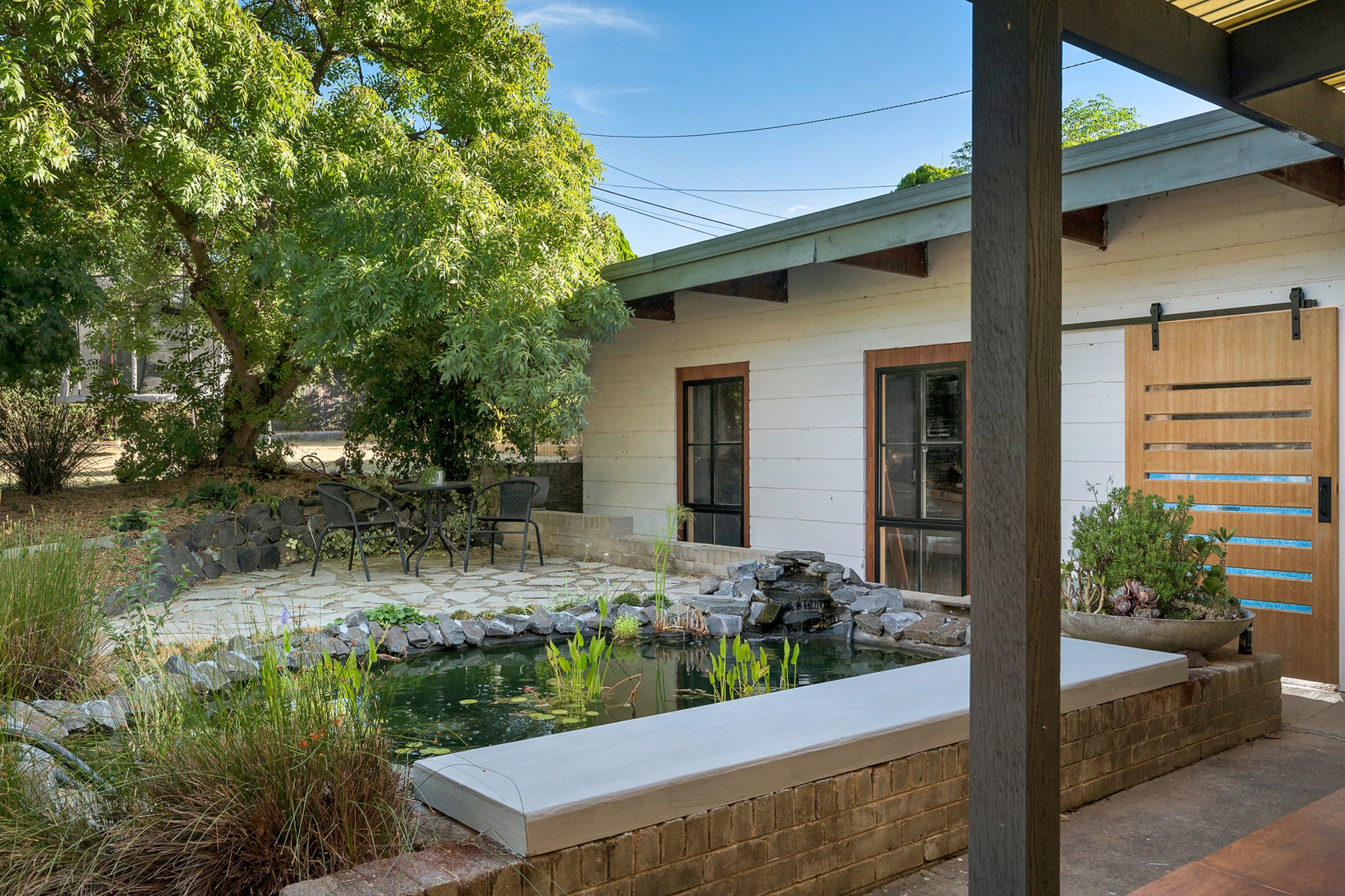 One of the many things you will enjoy about this home is the flexibility it offers for alfresco entertaining. You can choose either the large covered garden patio or the shaded paved area that sits under a leafy established deciduous tree. Both of these alfresco entertaining areas overlook the large water feature.