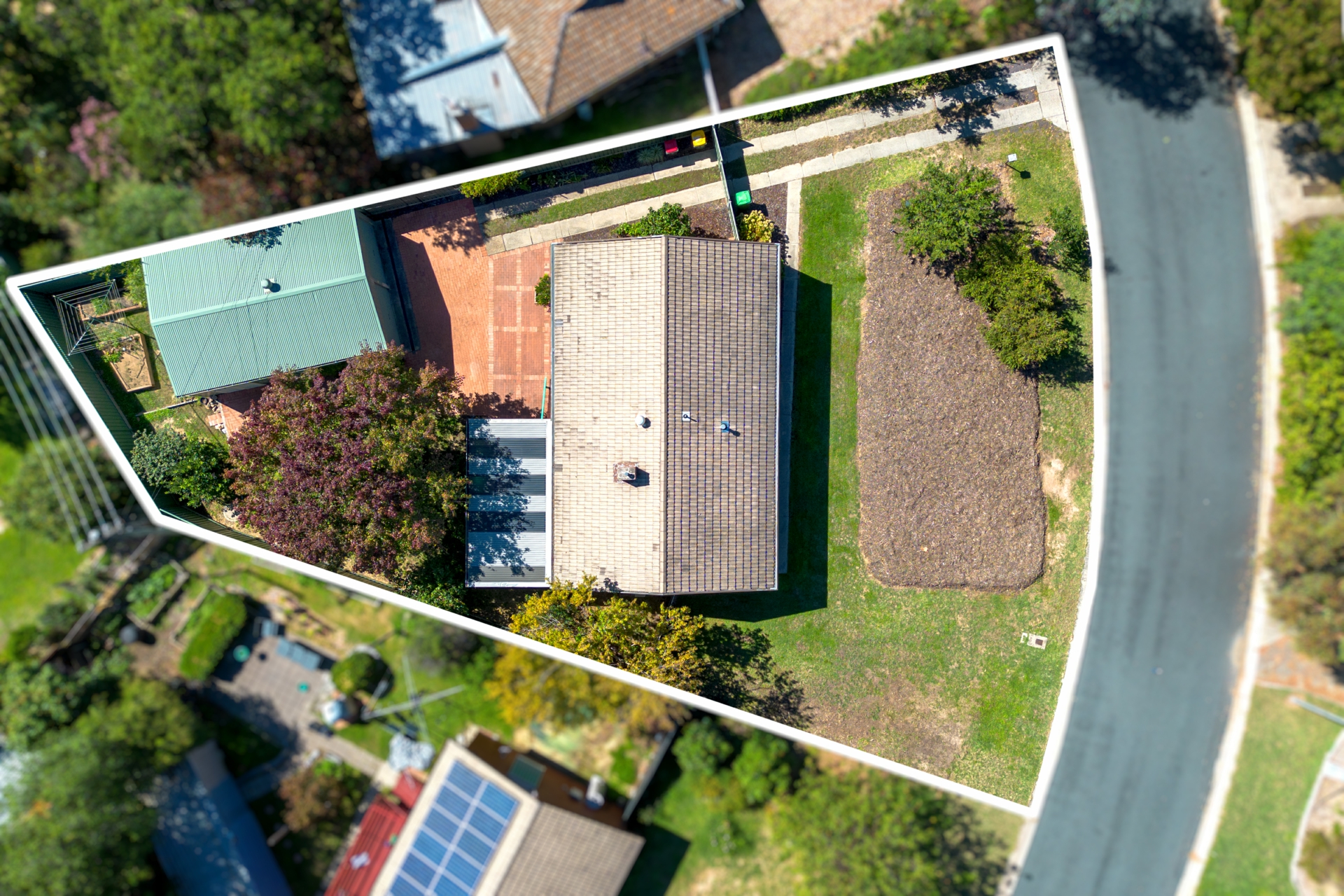 Veggie garden beds behind the garage