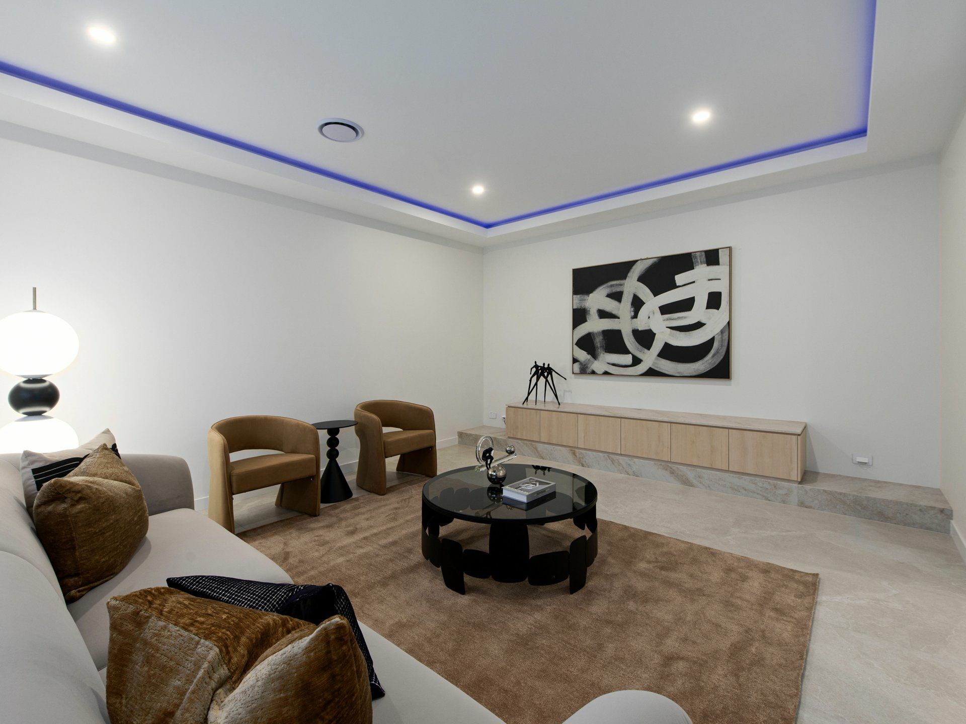 Upstairs, a secondary living zone provides an additional retreat, ideal for growing families seeking space. Two dedicated executive studies support working from home in comfort and style, while the purpose-built media room invites immersive movie nights and relaxed entertaining in a space designed to be enjoyed.