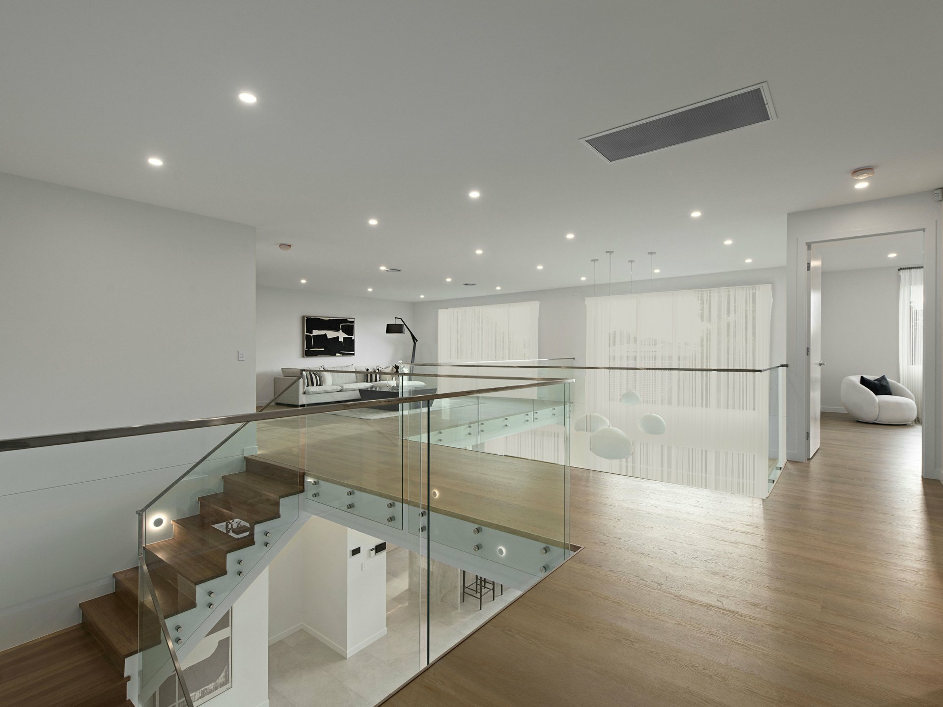 - Magnificent double-height foyer with sculptural staircase and dramatic architectural void