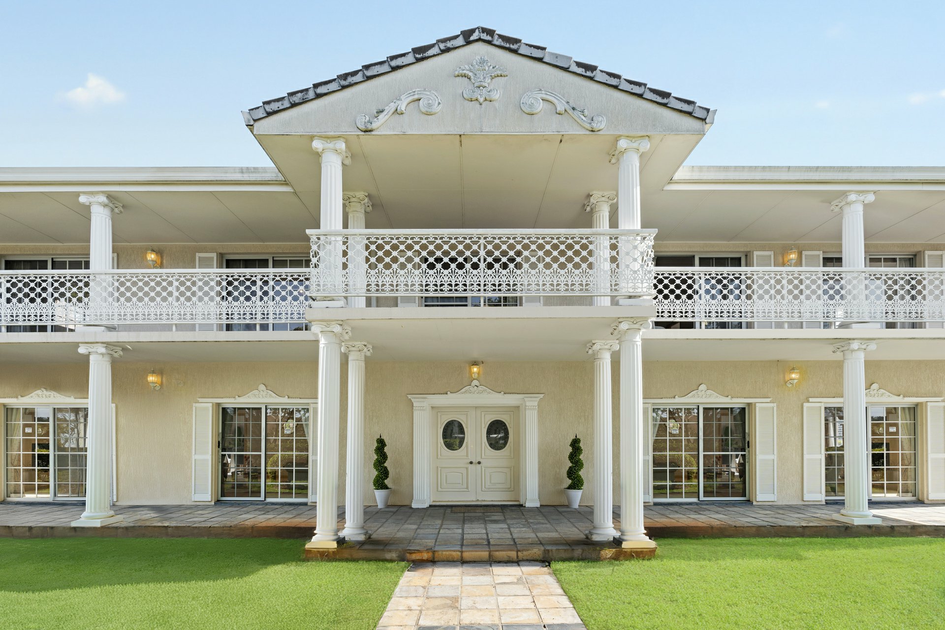 The experience of grandeur begins at the columned portico entrance and elegant double doors, where high ceilings and decorative plasterwork set an immediate tone of timeless luxury. This level is masterfully segmented, offering both intimate sophistication and expansive space for any occasion. The formal living room is defined by its stone-set firepit, providing a superb setting for distinguished guests, while the adjacent elegant dining room awaits lavish celebratory dinners.