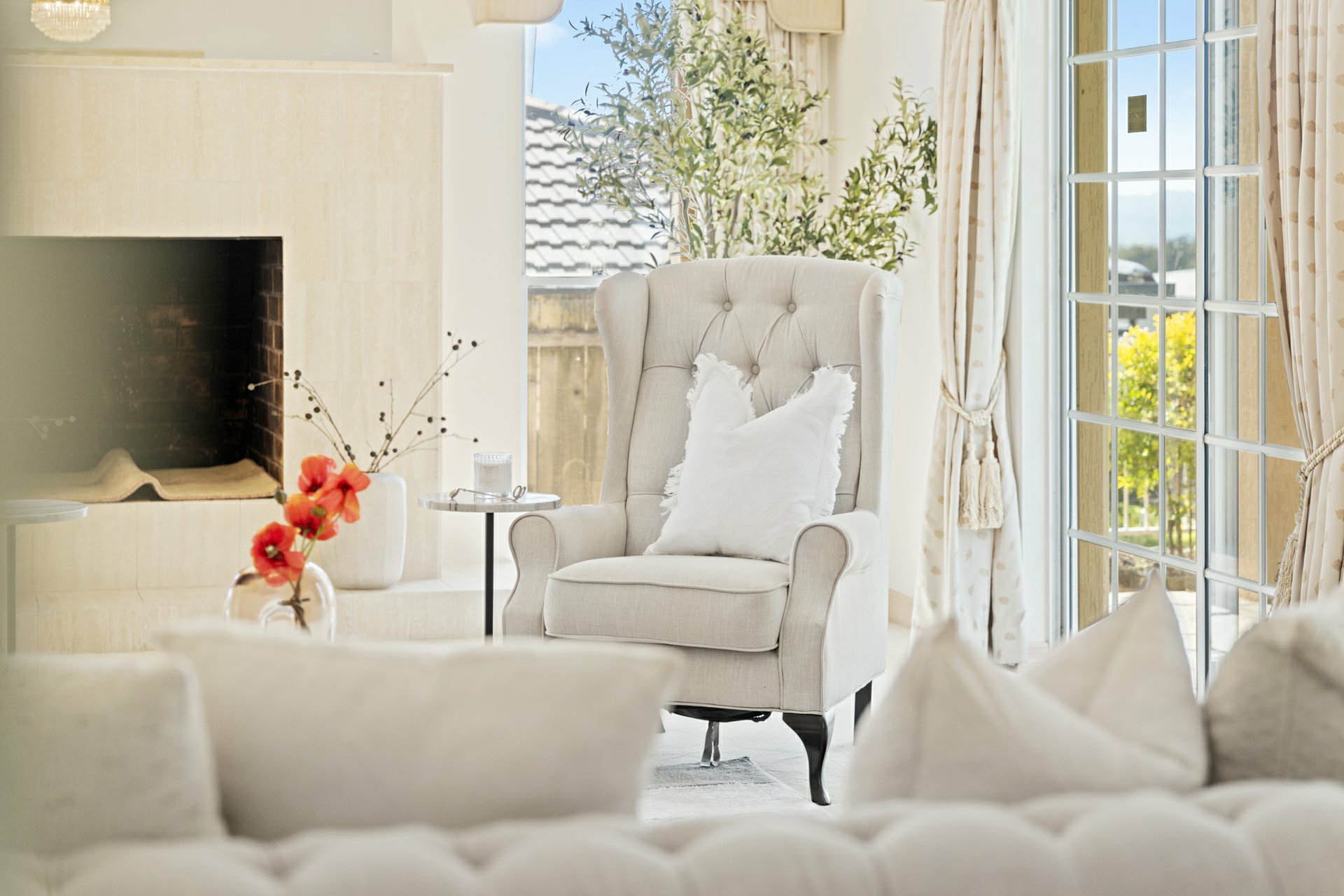 The remaining three upstairs bedrooms are equally generous and all with built-in robes. One features a private ensuite, while the other two share access to a impeccably tiled family bathroom equipped with a full-sized tub. An invaluable second family living space is located upstairs, perfect for children or as a quiet study area.