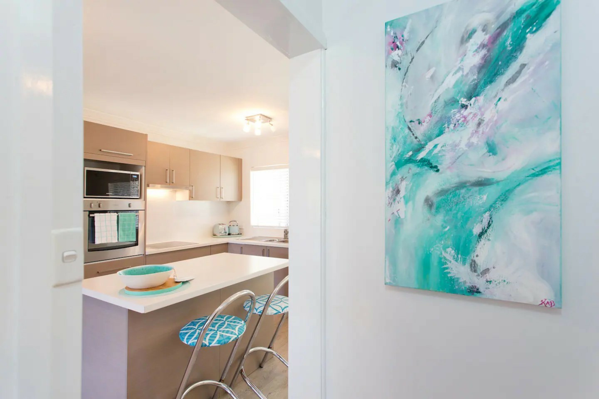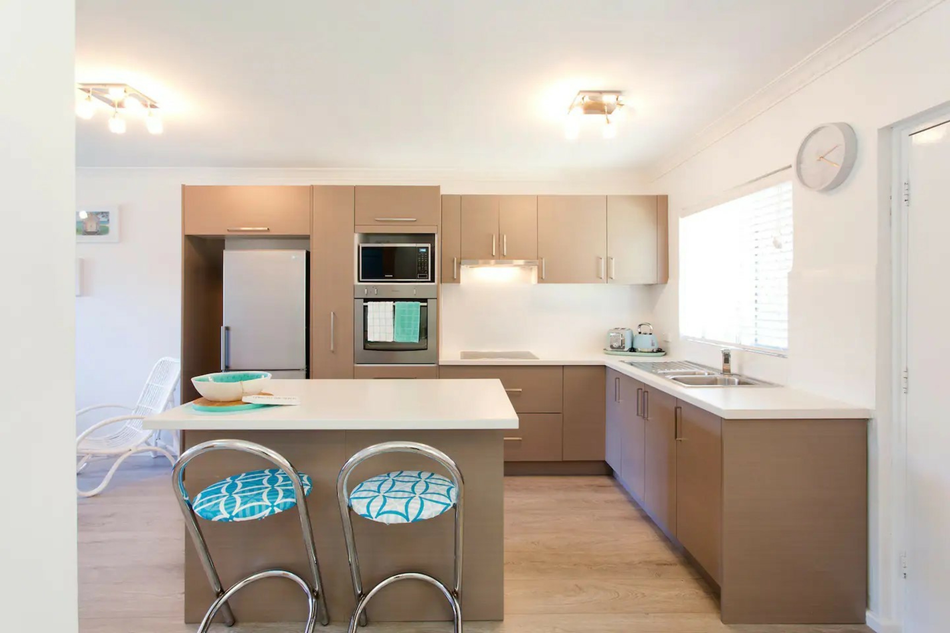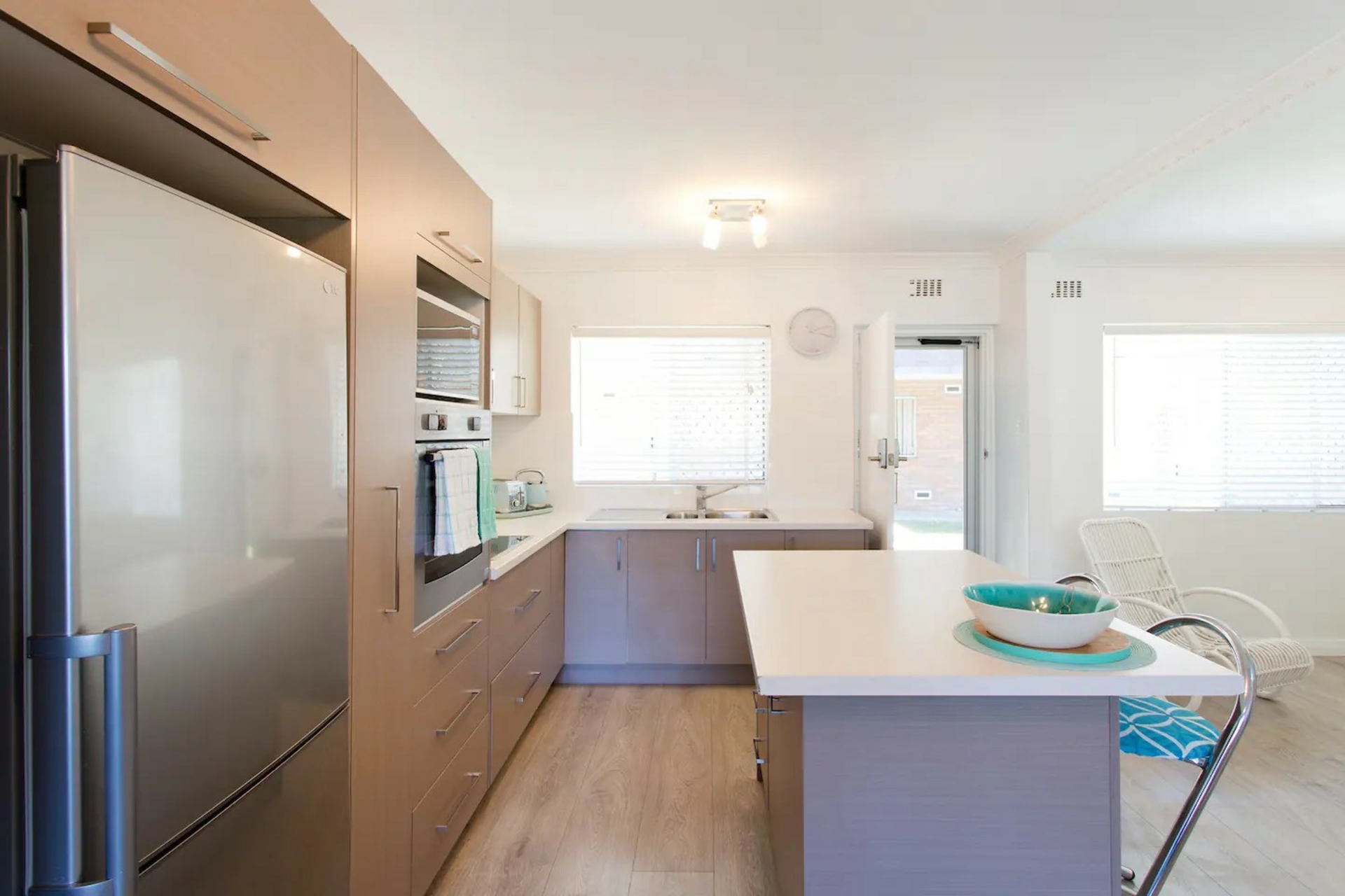 The gourmet kitchen may be compact, but it packs a punch with its modern appliances, ample storage, and clever design maximising functionality. Whip up delicious meals and enjoy them at the breakfast bar soaking in the salty sea breeze.