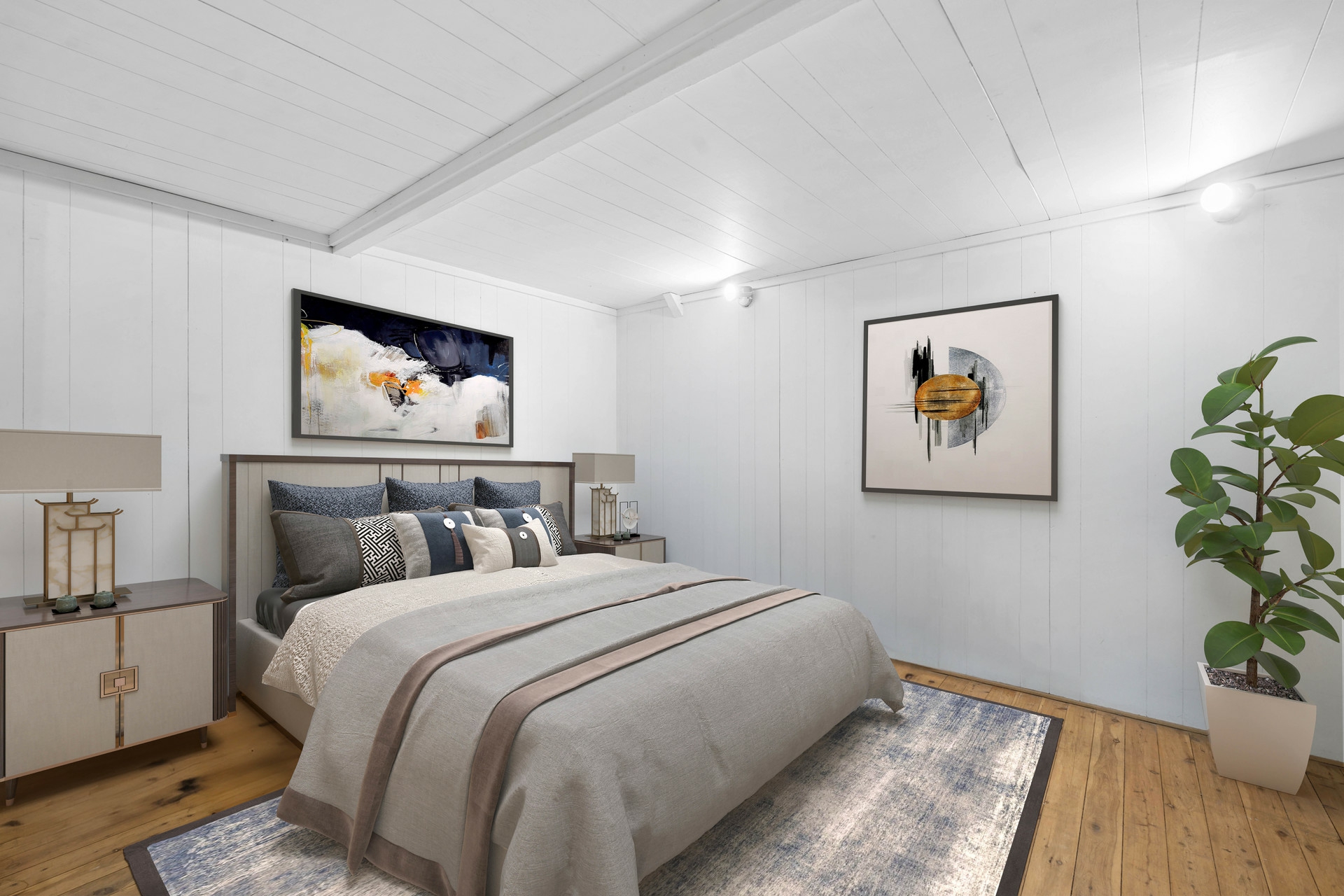 - Lime Washed wooden floorboards and security grilles throughout