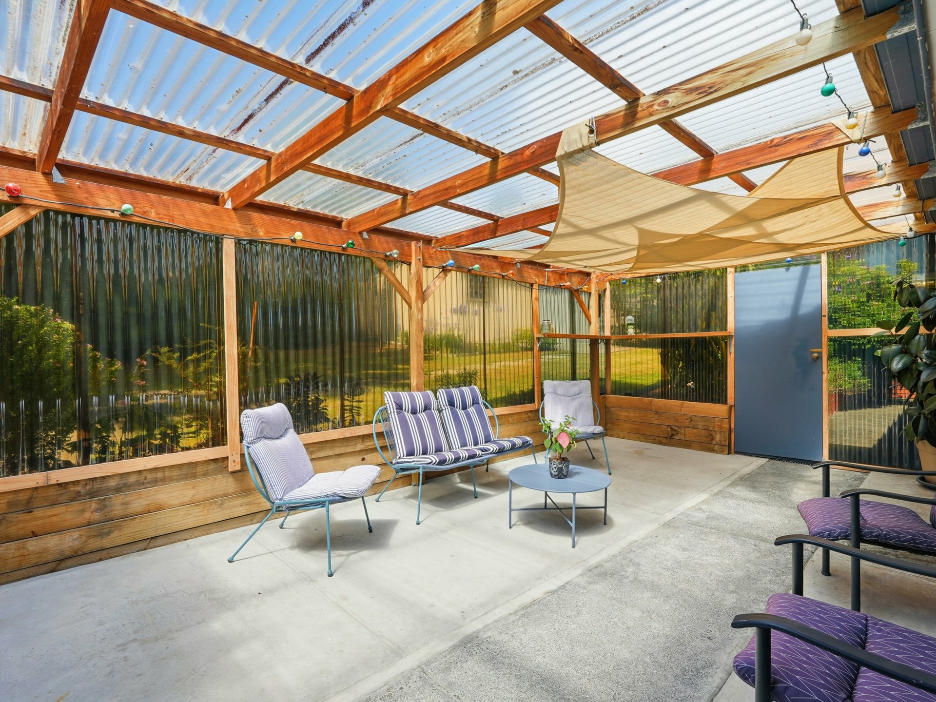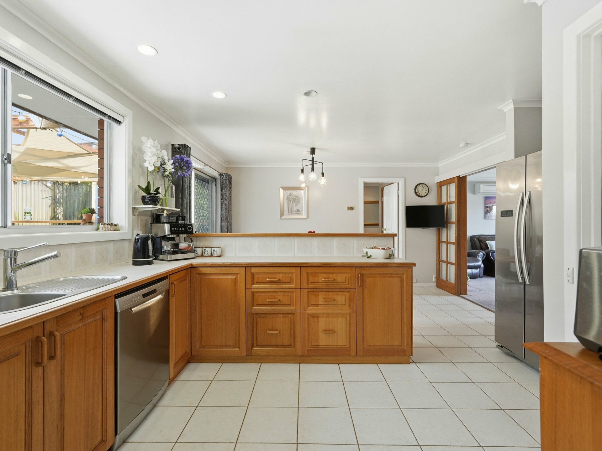 The living room is genuinely generous, the kitchen and dining are sensibly separate, and the covered outdoor area looks out to established, well-kept gardens - not bare Colorbond or next door's "work in progress".