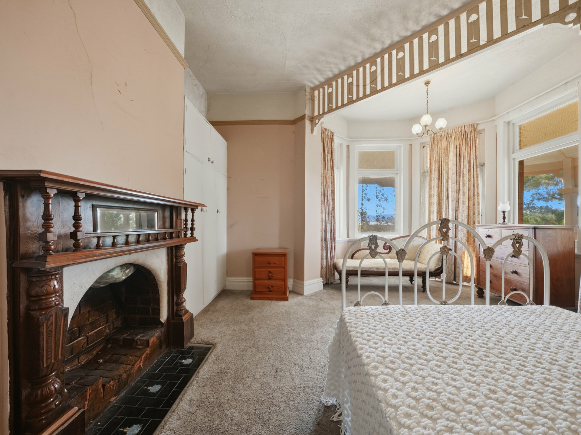 From the moment you arrive, the home’s captivating façade and wide verandas make a lasting impression. Inside, the charm continues with high ceilings, ornate timber fireplace surrounds, elegant picture rails, and stunning leadlight windows framing the grand entry. A beautiful bay window enhances the sense of space and natural light, while open fireplaces add warmth and ambience.