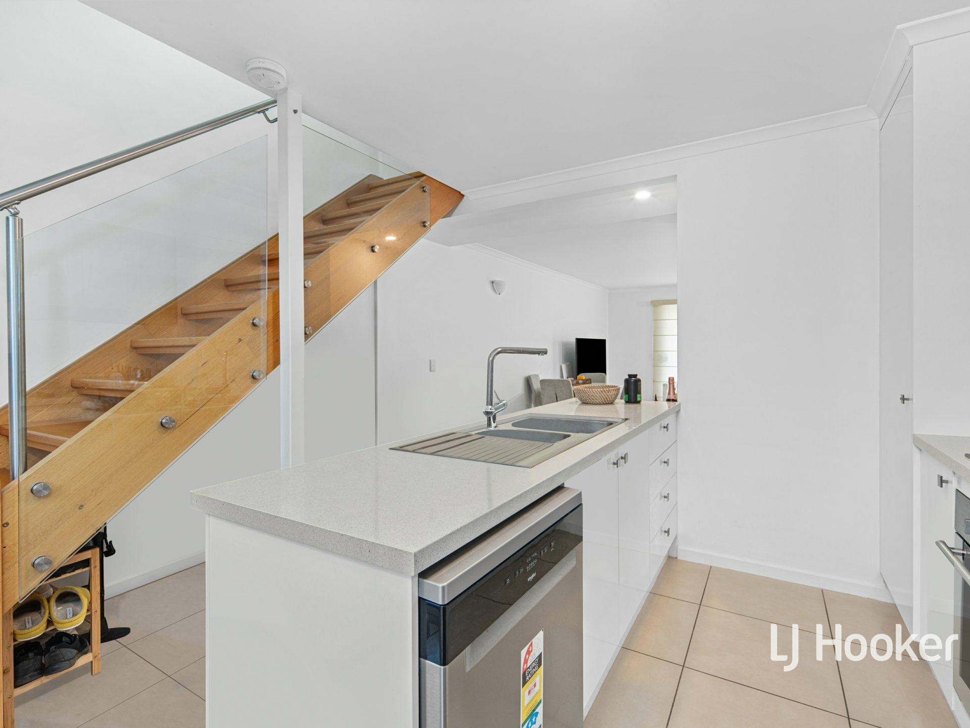 Inside, a bright open-plan layout showcases tiled living and dining areas filled with natural light, while high raked ceilings enhance the sense of space and warmth. The well-appointed kitchen features electric cooking and a dishwasher, making everyday living effortless.